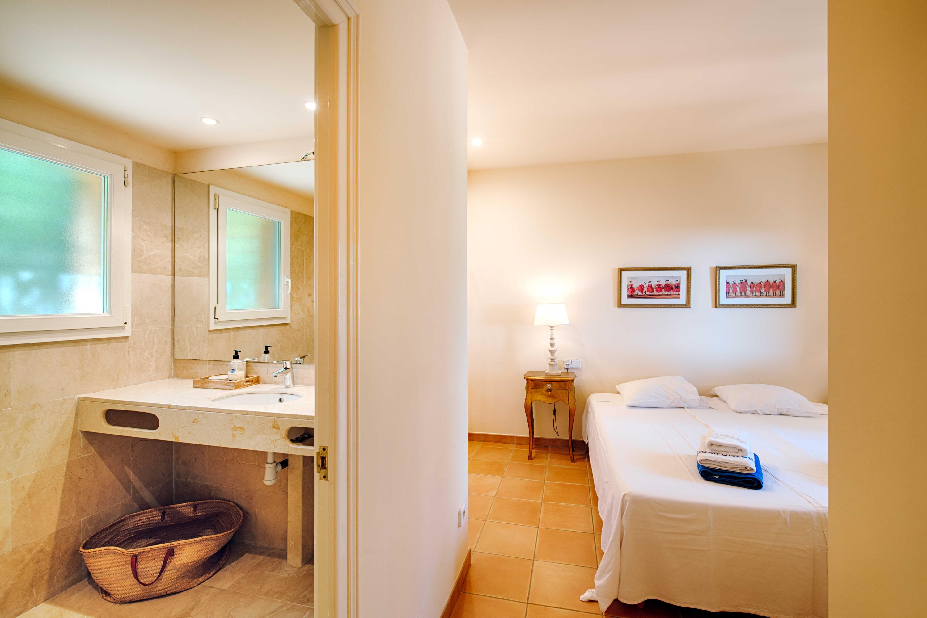 Diese Villa befindet sich in der Wohngegend Es Valls. Vom Garten mit Rasen und Pool hat man einen schönen Blick auf die Wälder und das Mittelmeer.
