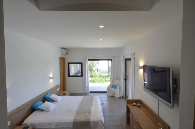 (12 Personen): Unten: Wohnzimmer, offene Küche, zwei Schlafzimmer, Bad, WC.Erster Stock: Hauptschlafzimmer mit eigenem Bad (Badewanne, Dusche, WC und Bidet), Schlafzimmer mit Doppelbett, Badezimmer, Schlafzimmer mit zwei Einzelbetten, Schlafzimmer mit Doppelbett, Badezimmer mit Dusche.