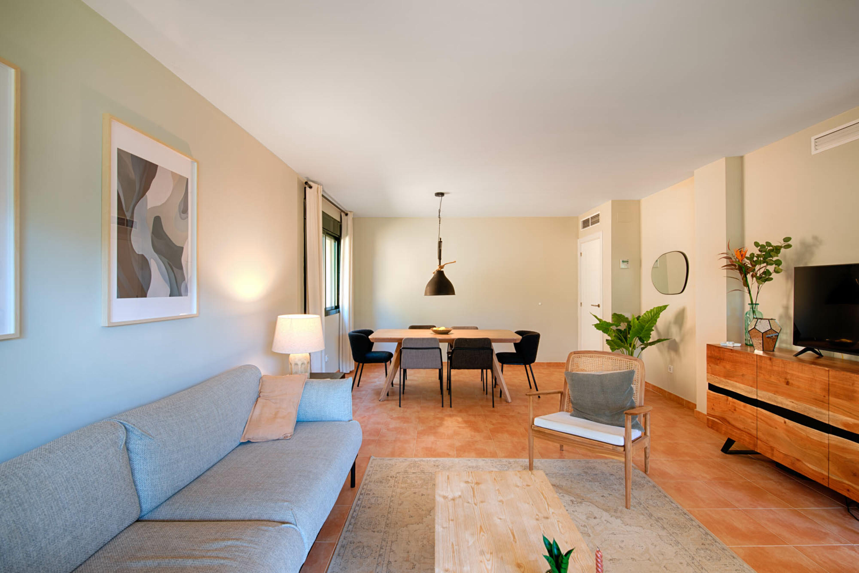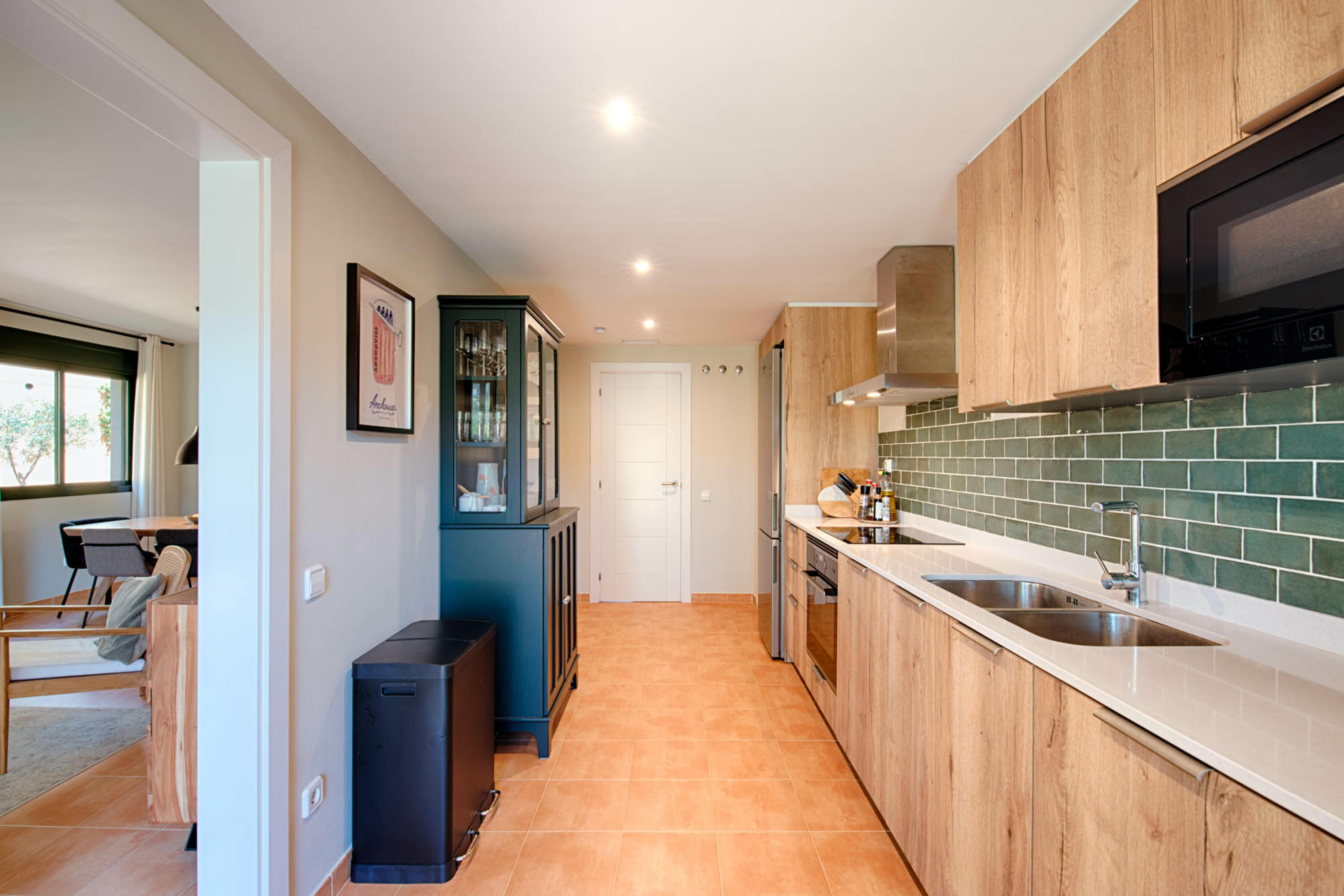 La cocina, por supuesto, está equipada con una gran nevera-congelador, microondas/horno, vitrocerámica, lavadora y lavavajillas.