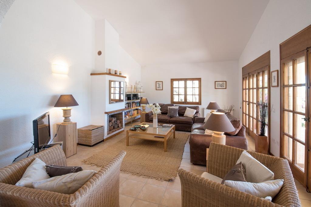 Desde las diversas terrazas se puede disfrutar de una hermosa vista al mar. La villa se encuentra en una zona tranquila en una especie de península no muy lejos de la playa de Sa Tuna, en la urbanización La Borna.