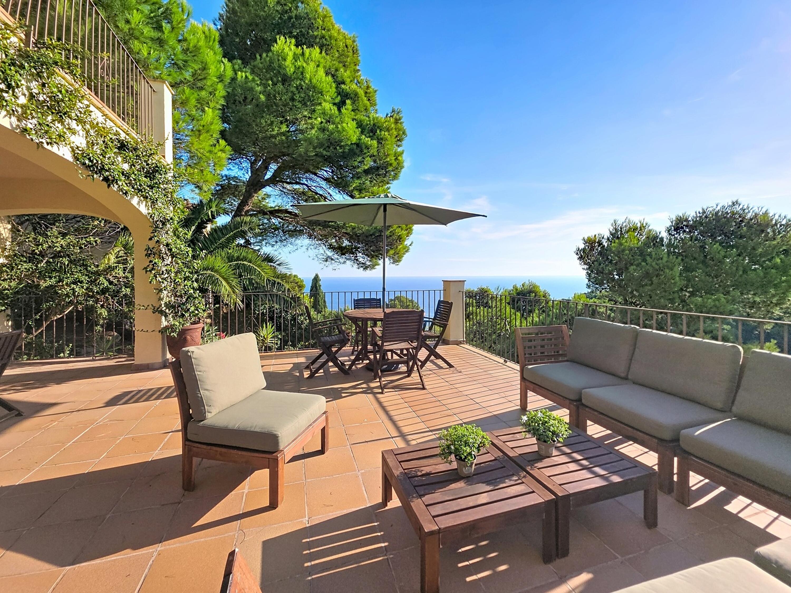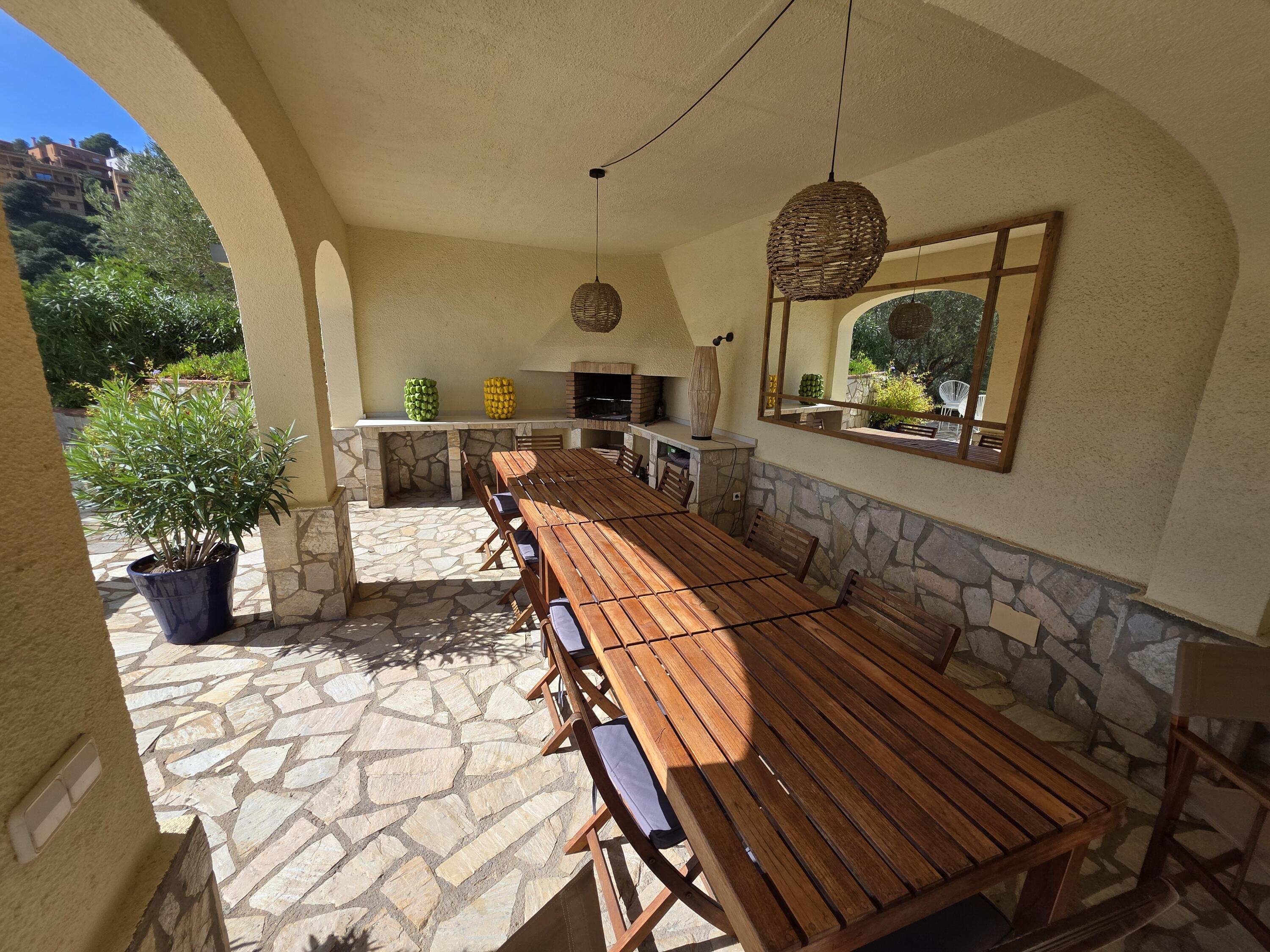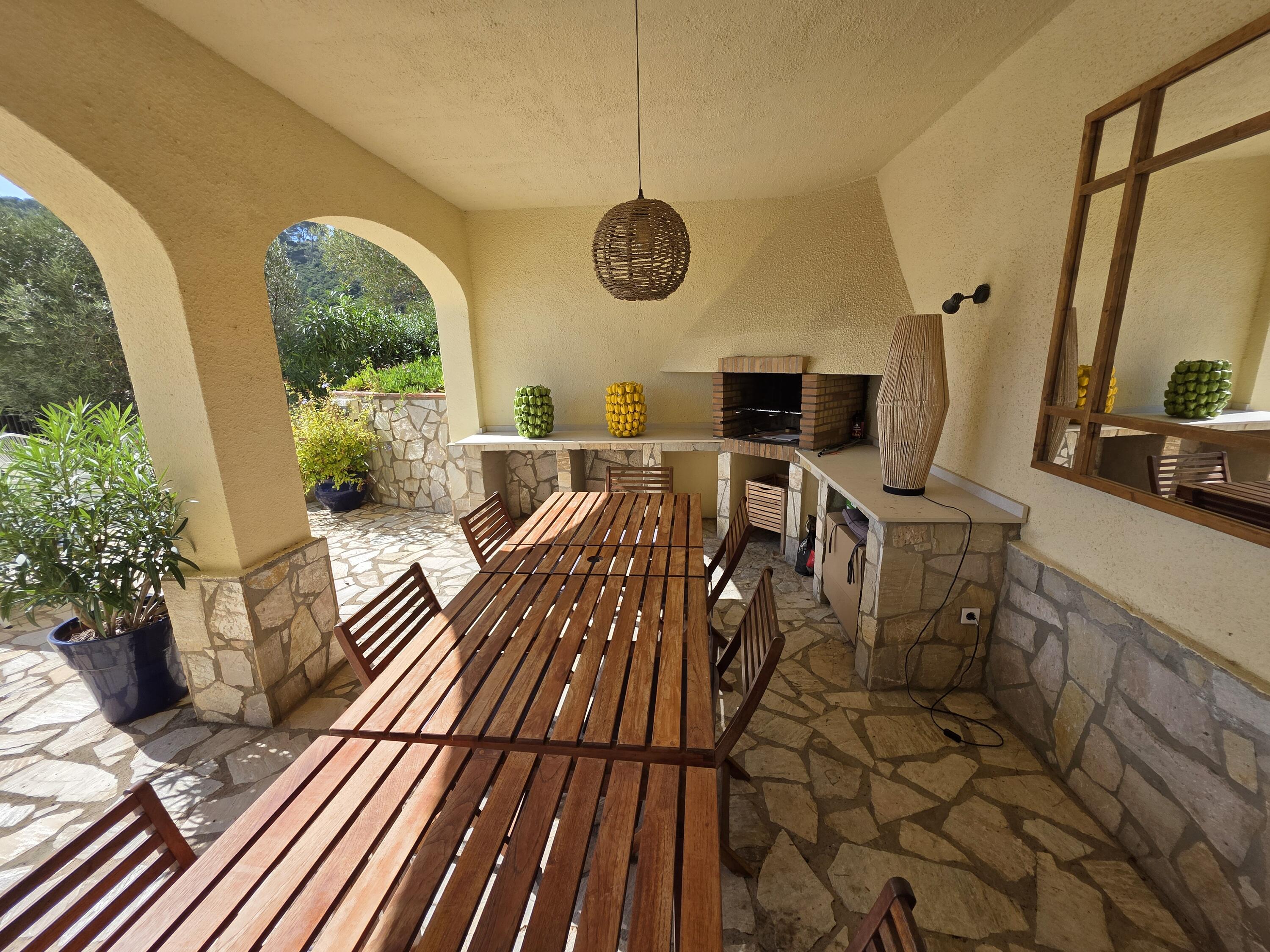 Realmente una hermosa villa, decorada con buen gusto. En frente de la casa se encuentra la piscina privada con una gran terraza orientada al sur. También hay un área cubierta donde se puede disfrutar del almuerzo a la sombra, la barbacoa de obra está en una esquina. La villa dispone de suficientes muebles de jardín de buena calidad. Hay una hermosa vista del valle y el mar Mediterráneo.