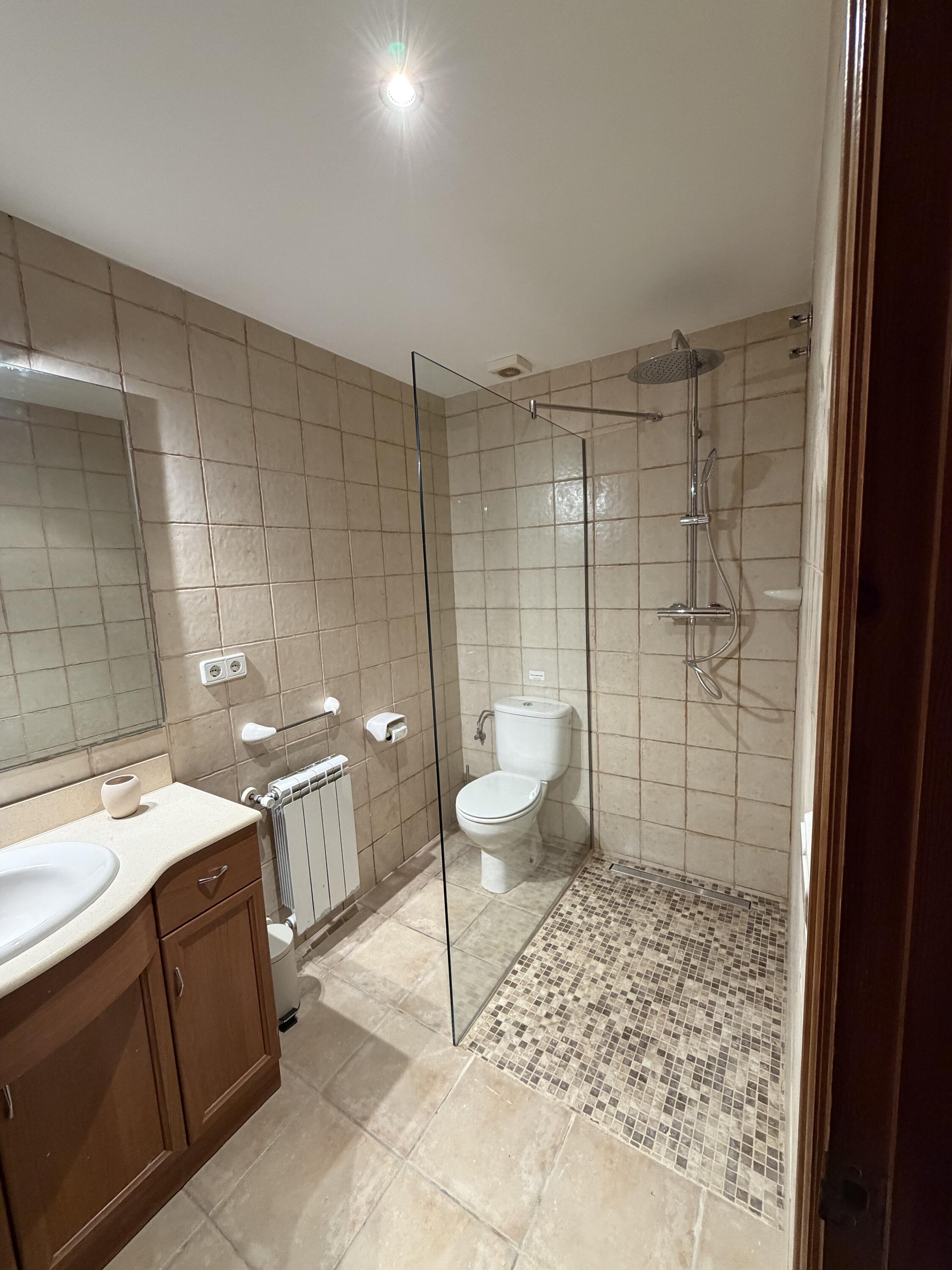 (12 personas): planta baja: sala de estar, cocina abierta, dos habitaciones dobles, baño, aseo.Primera planta: dormitorio principal con baño privado (bañera, ducha, inodoro y bidet), dormitorio con cama doble, baño, dormitorio con dos camas individuales, dormitorio con cama doble, baño con ducha.