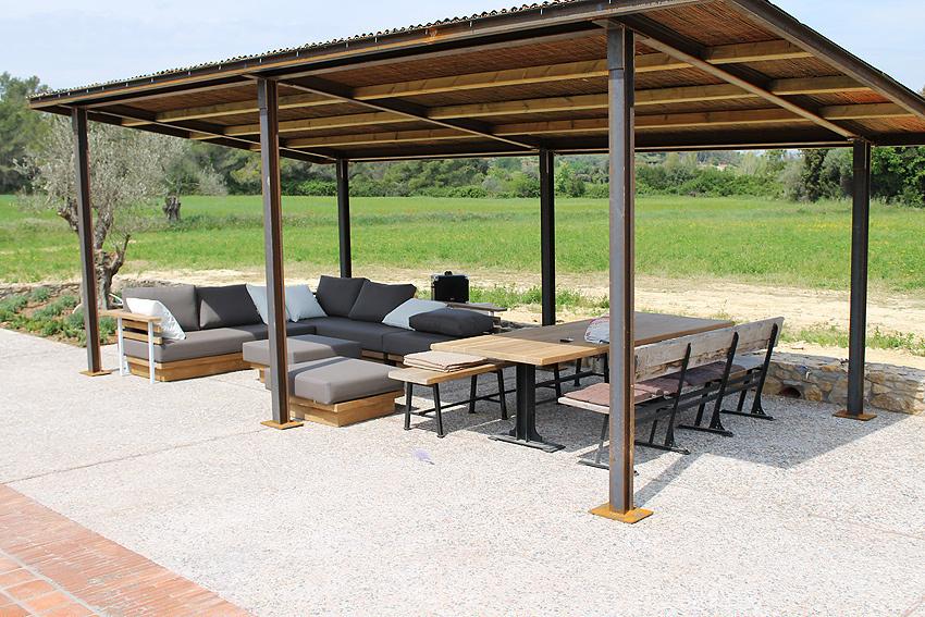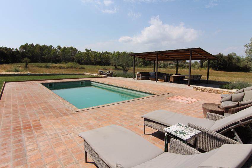 La piscina se encuentra en la parte frontal de la casa, también hay una zona barbacoa con comedor de verano y zona terraza chill out cubierta.