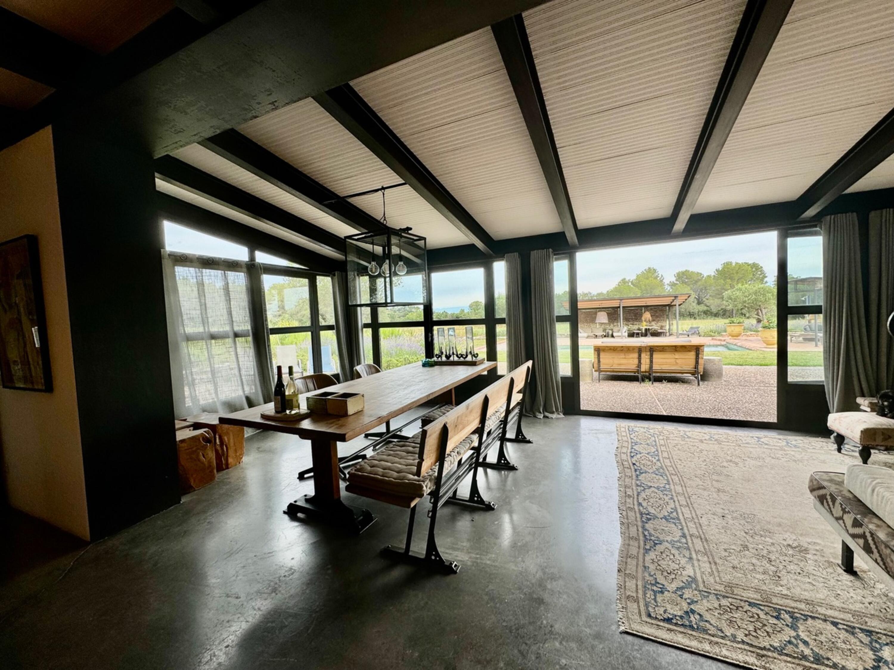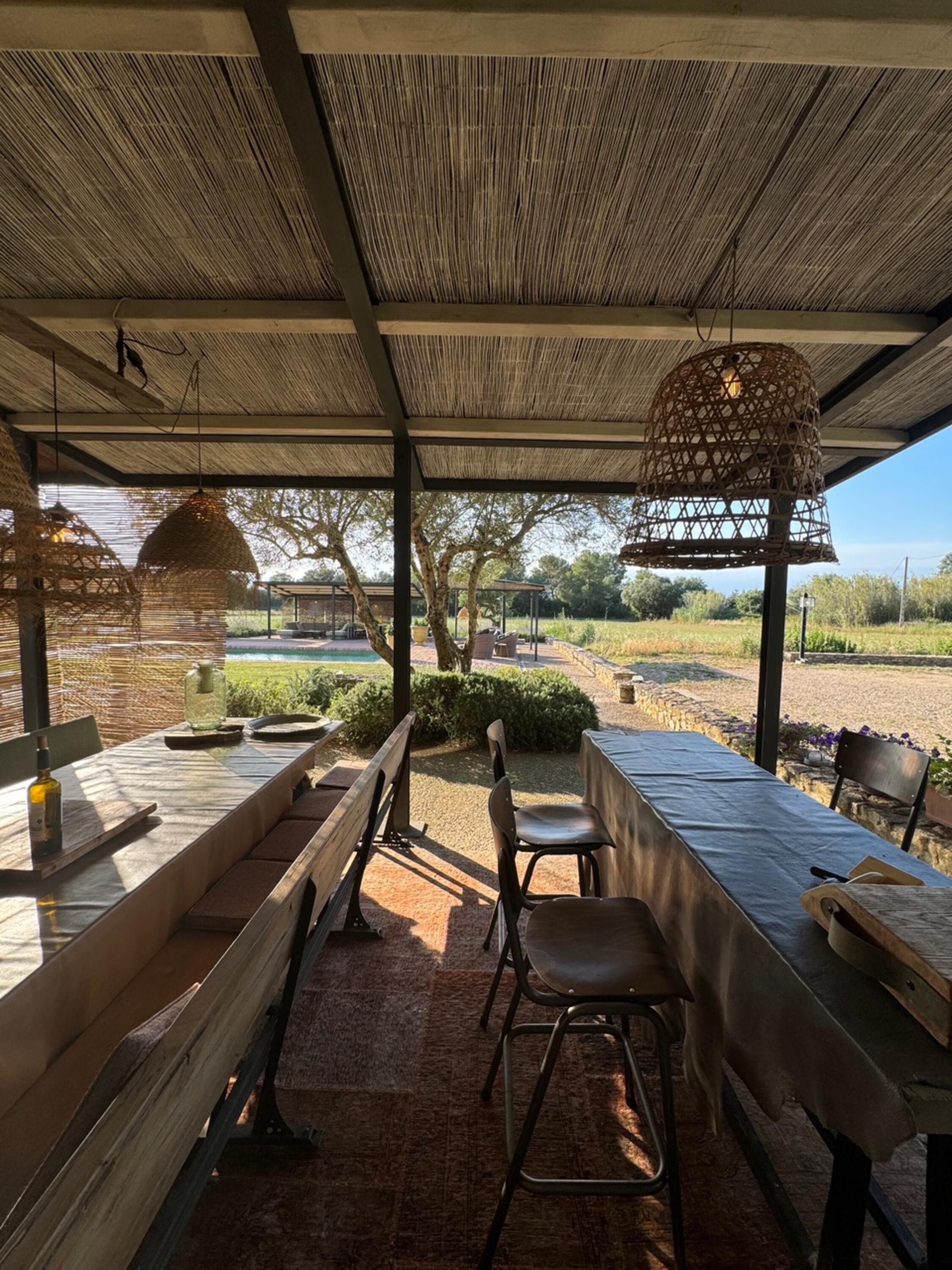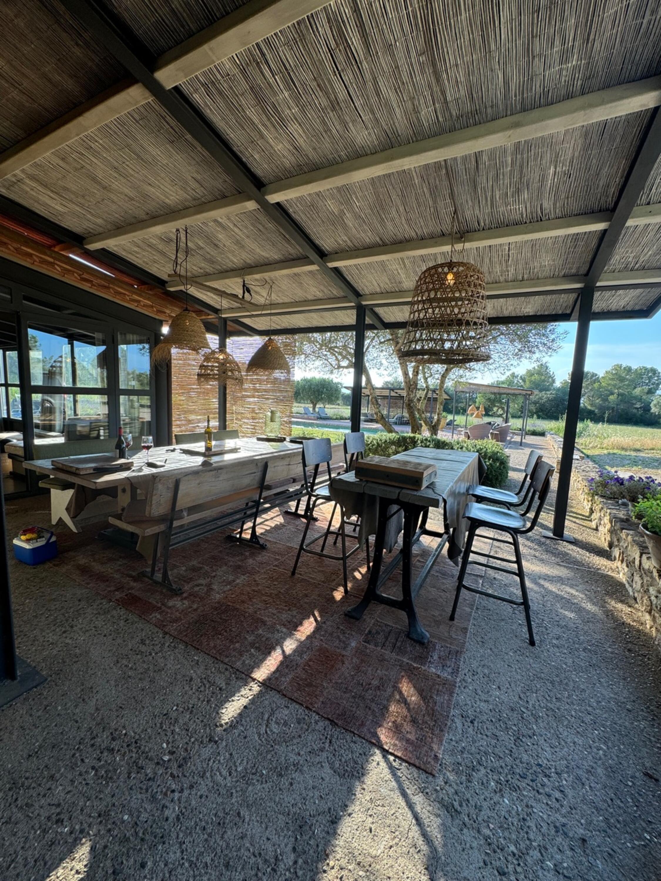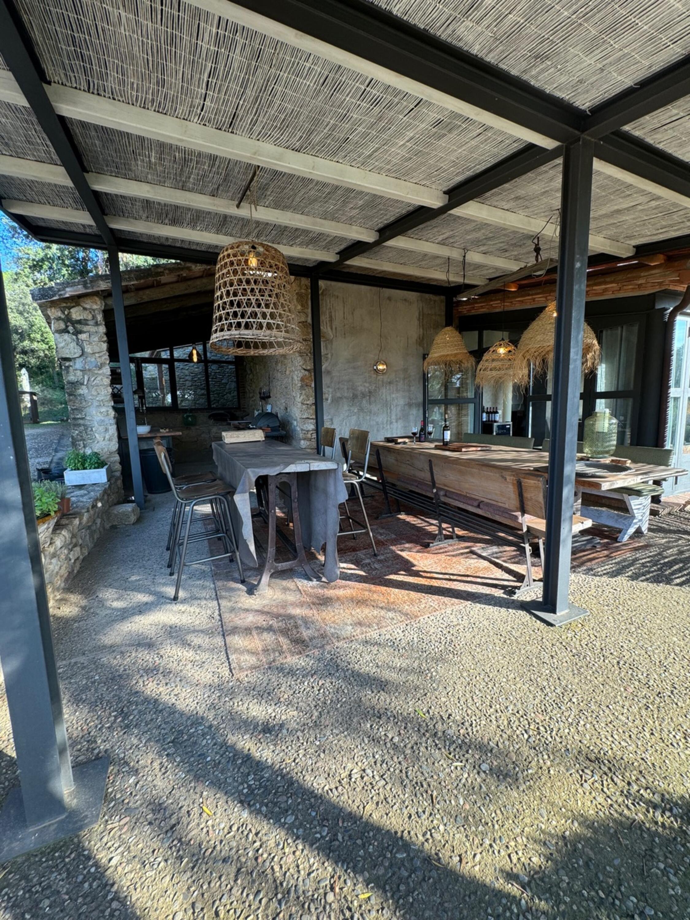 En la parte delantera de la casa, desde la gran terraza equipada con varios tipos de muebles de exterior se puede disfrutar de unas vistas a los Pirineos cuando hace buen tiempo. También hay una hermosa piscina y una zona jardín con césped. Las tiendas y supermercados más cercanos se encuentran a 10 minutos en coche, en La Bisbal. Si desea ir a la playa, puede llegar en 20 minutos en coche.