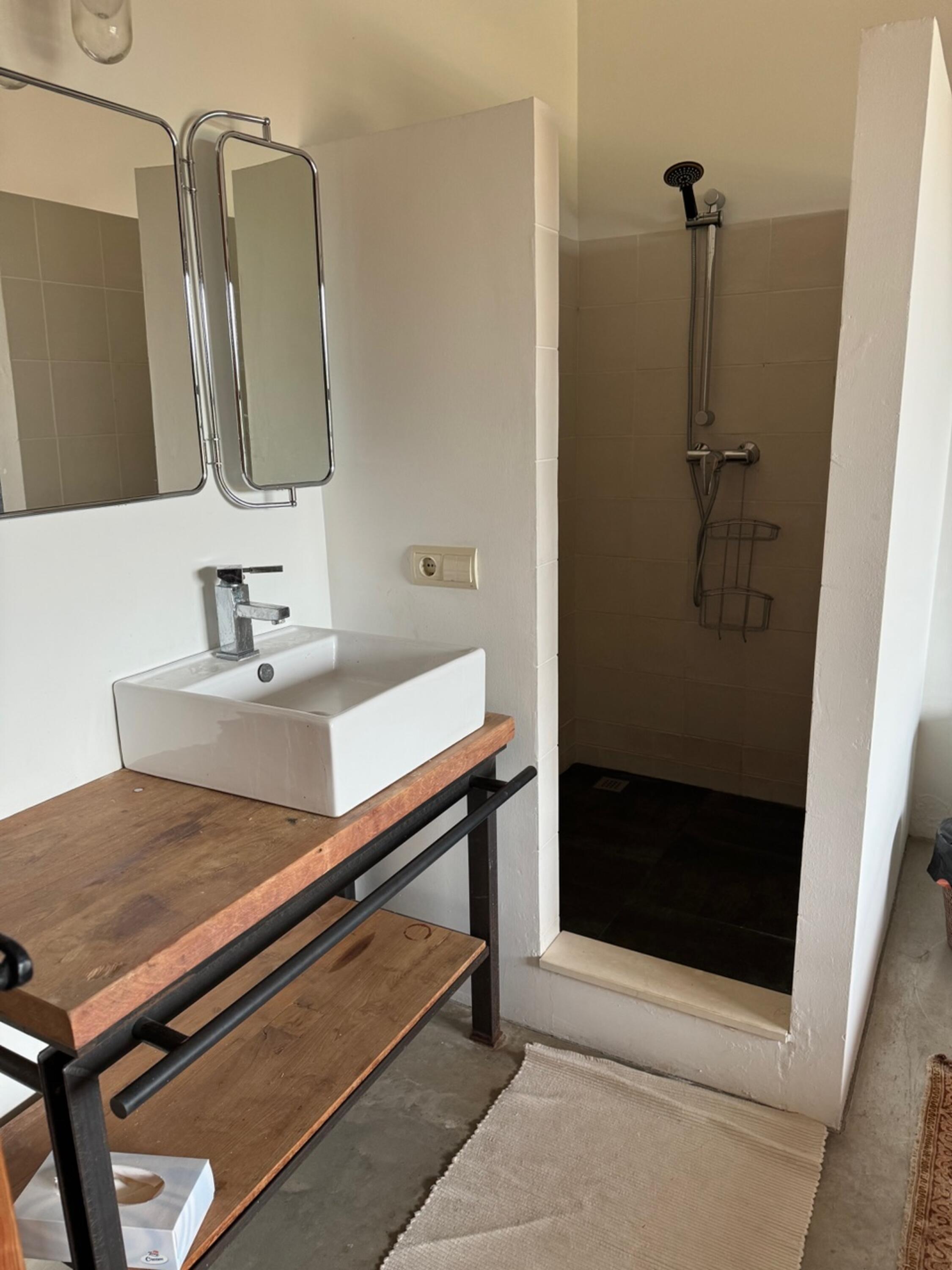 En la planta superior hay cuatro habitaciones dobles, todas con su propio lavabo. También hay aparte un cuarto de baño con ducha, inodoro y lavabo.