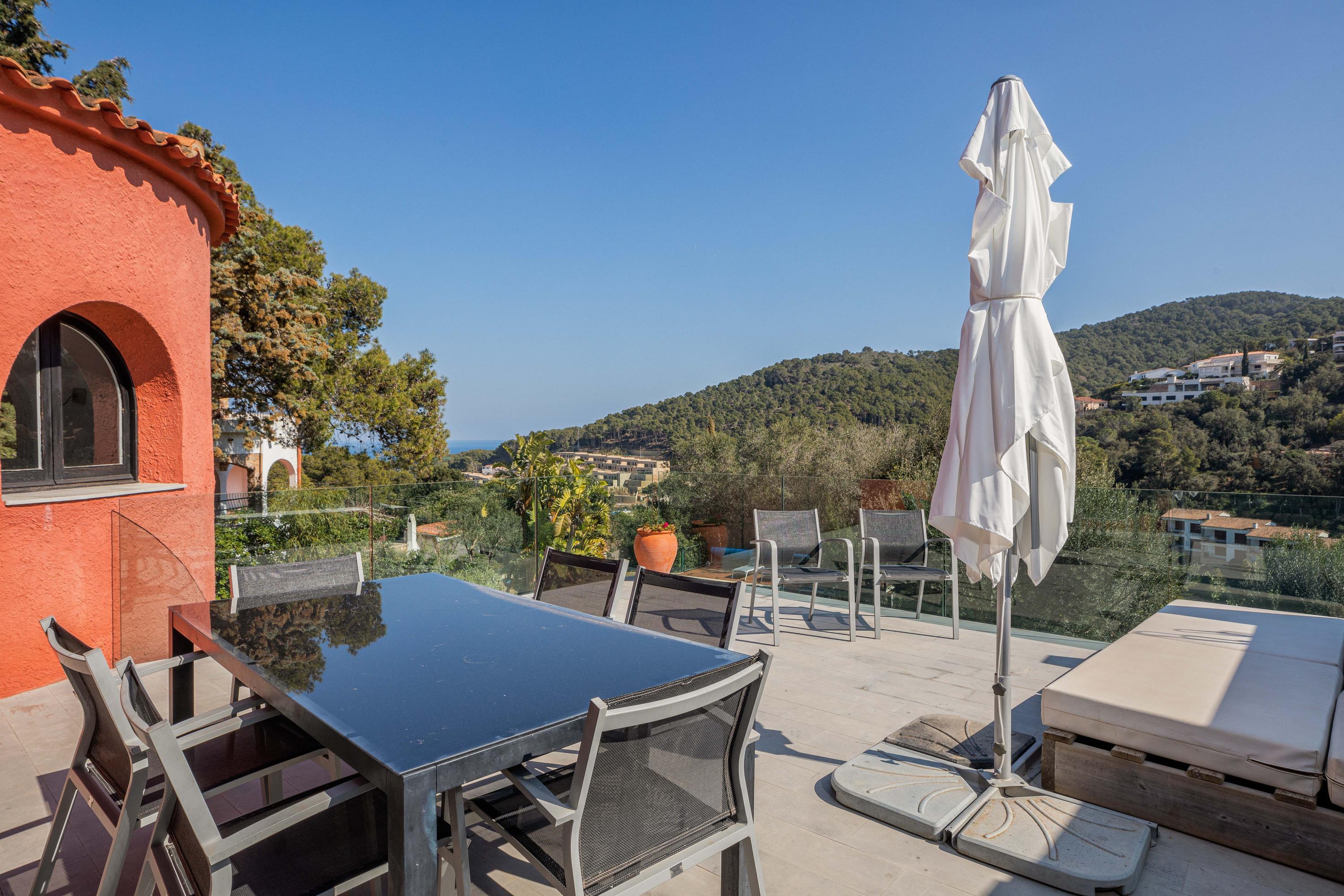 En una tranquila zona residencial de Sa Riera, se encuentra esta preciosa casa de vacaciones con vistas al mar y a los alrededores. Situada a pocos minutos de la playa y del centro de Begur, esta propiedad ofrece una experiencia inolvidable.