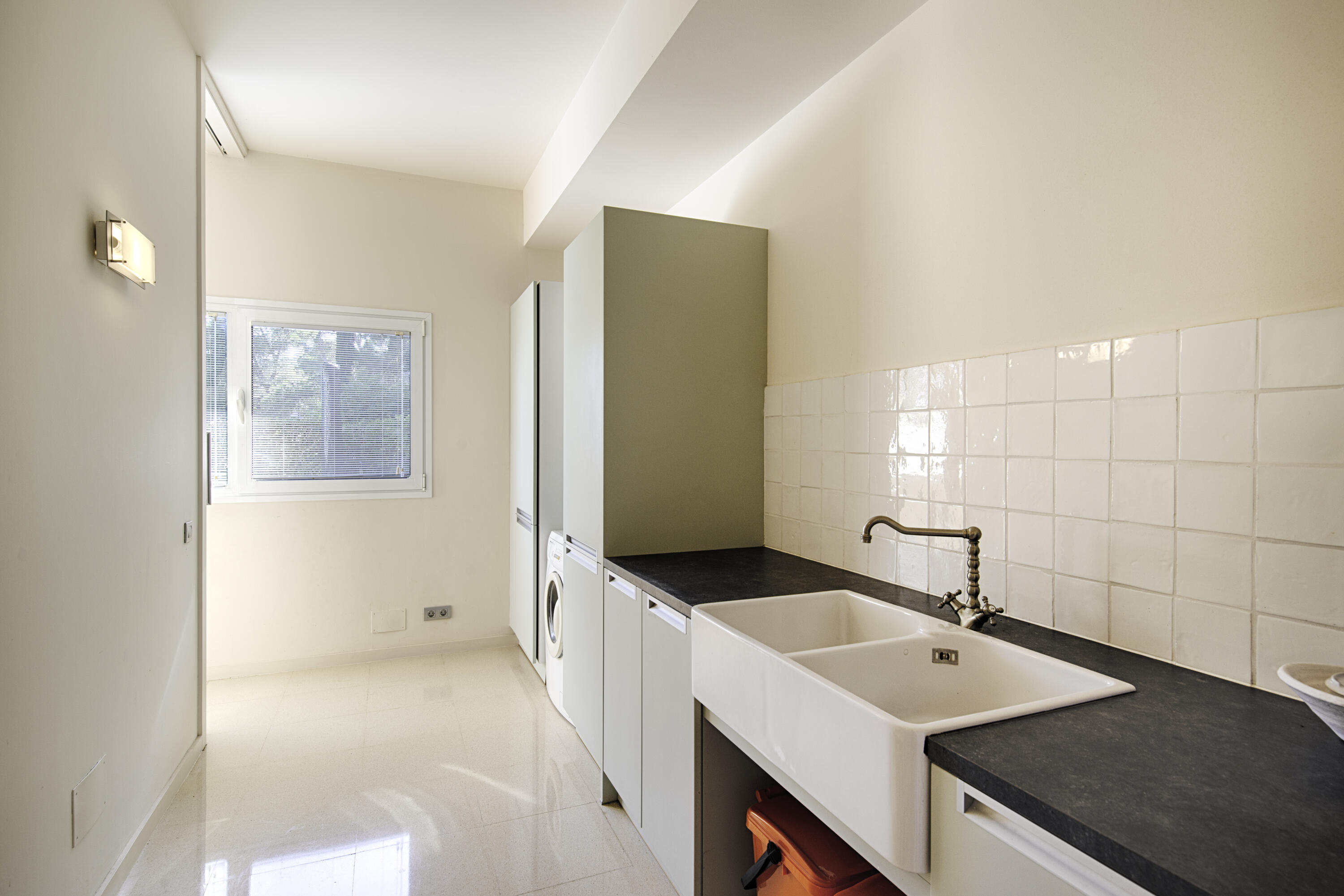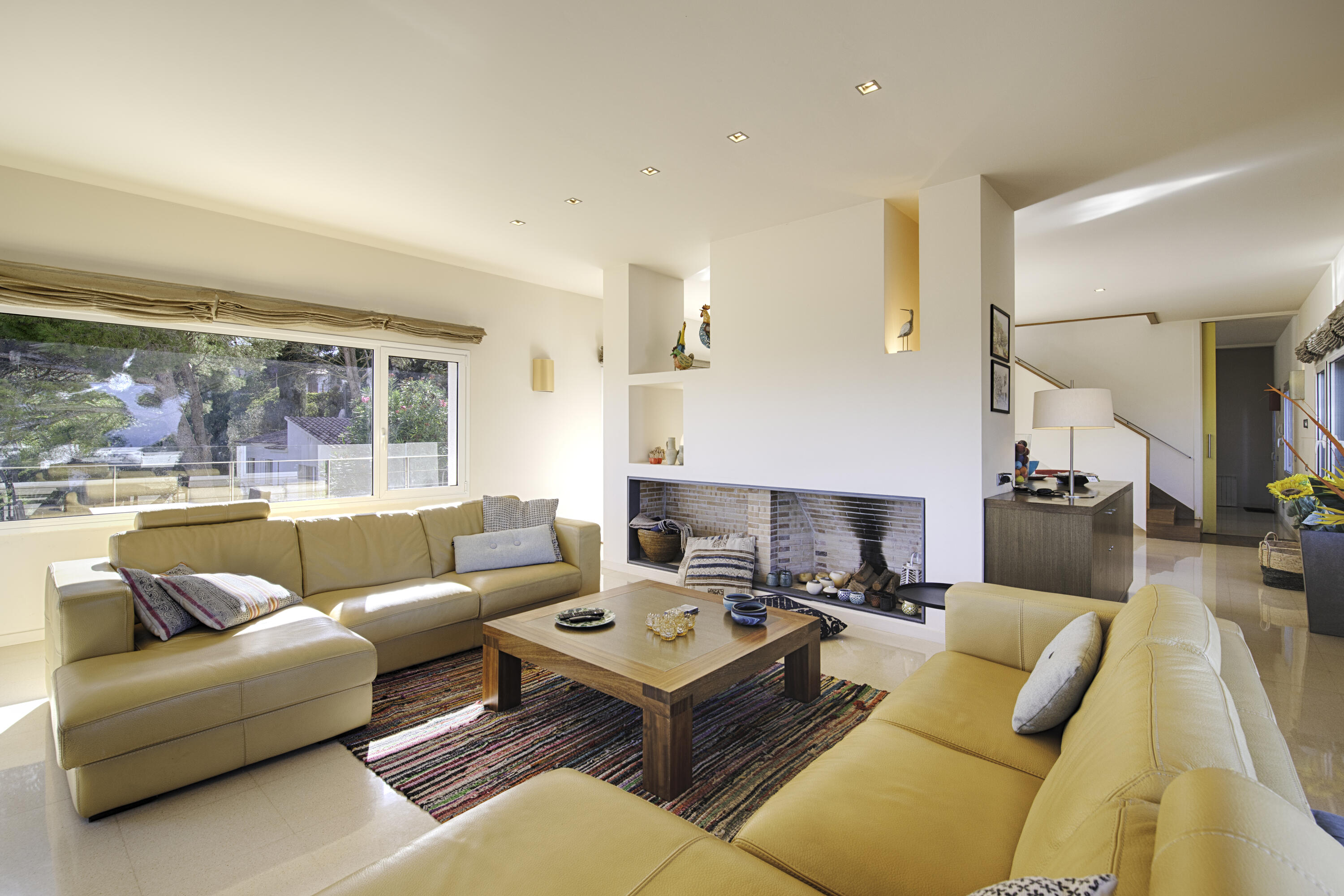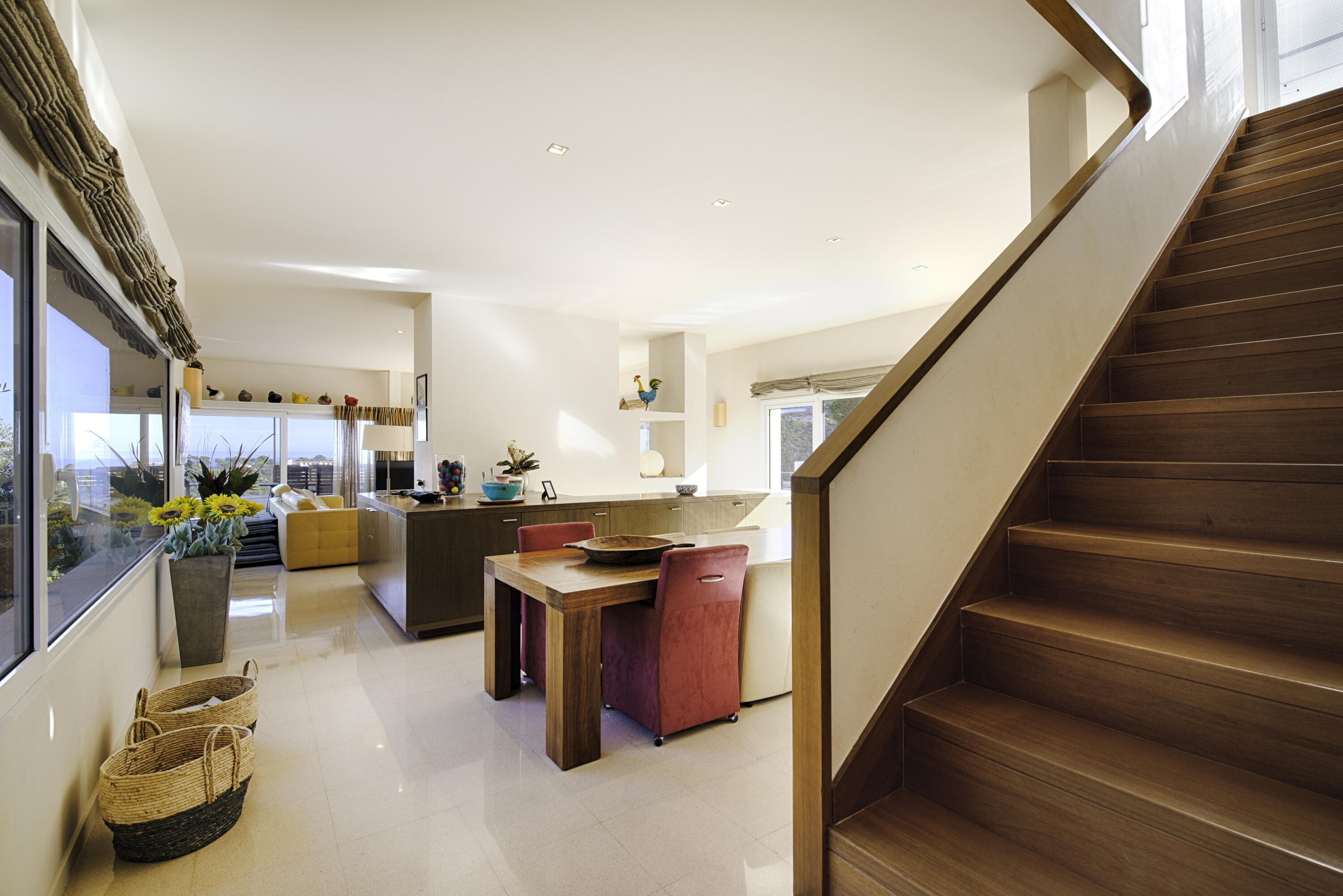 Le portail électronique vous permet d'accéder au carport, où vous pouvez garer votre voiture à l'ombre. La porte d'entrée donne accès à l'escalier qui mène à la maison. Vous entrez entre la salle à manger et le salon.