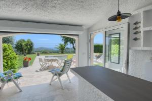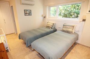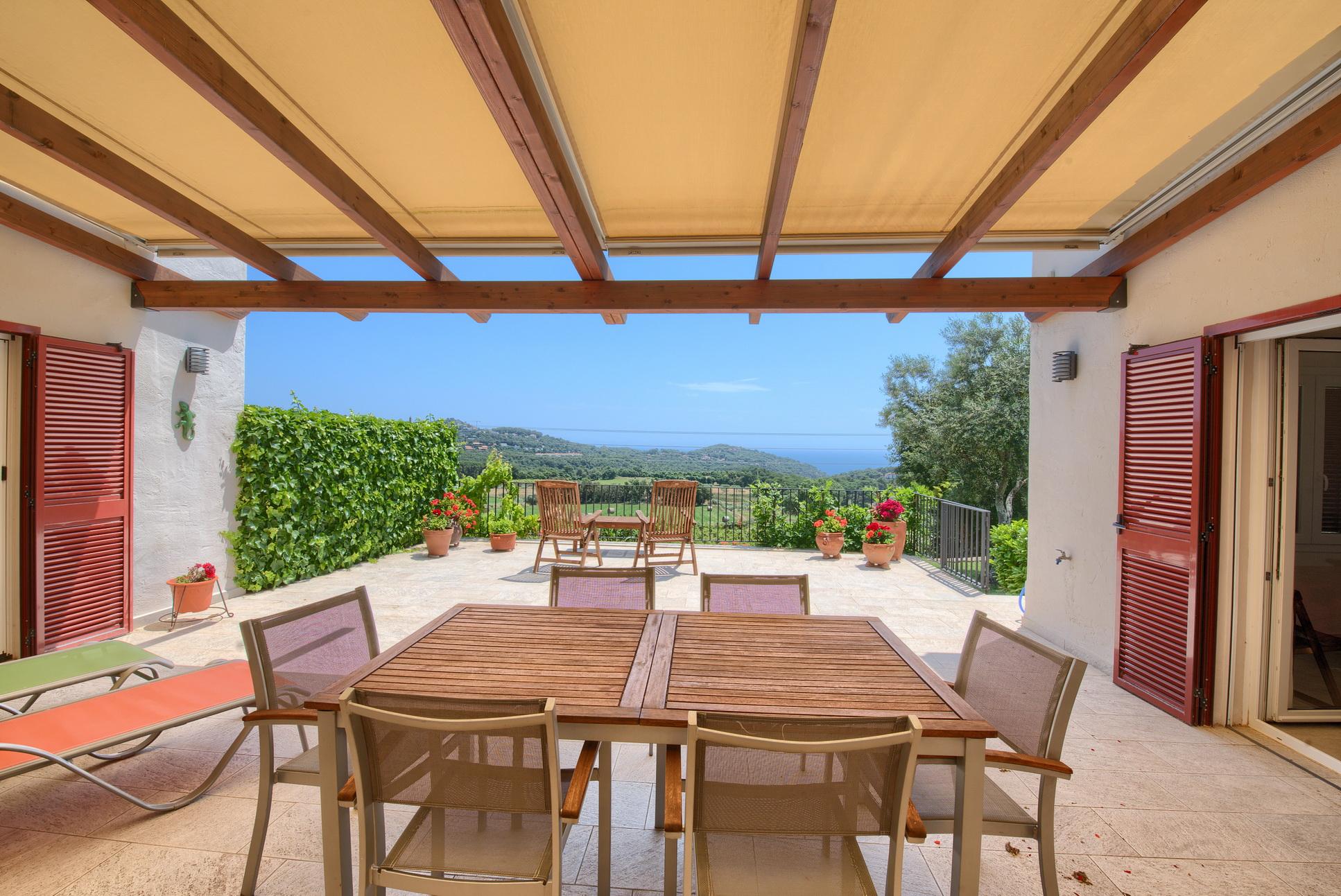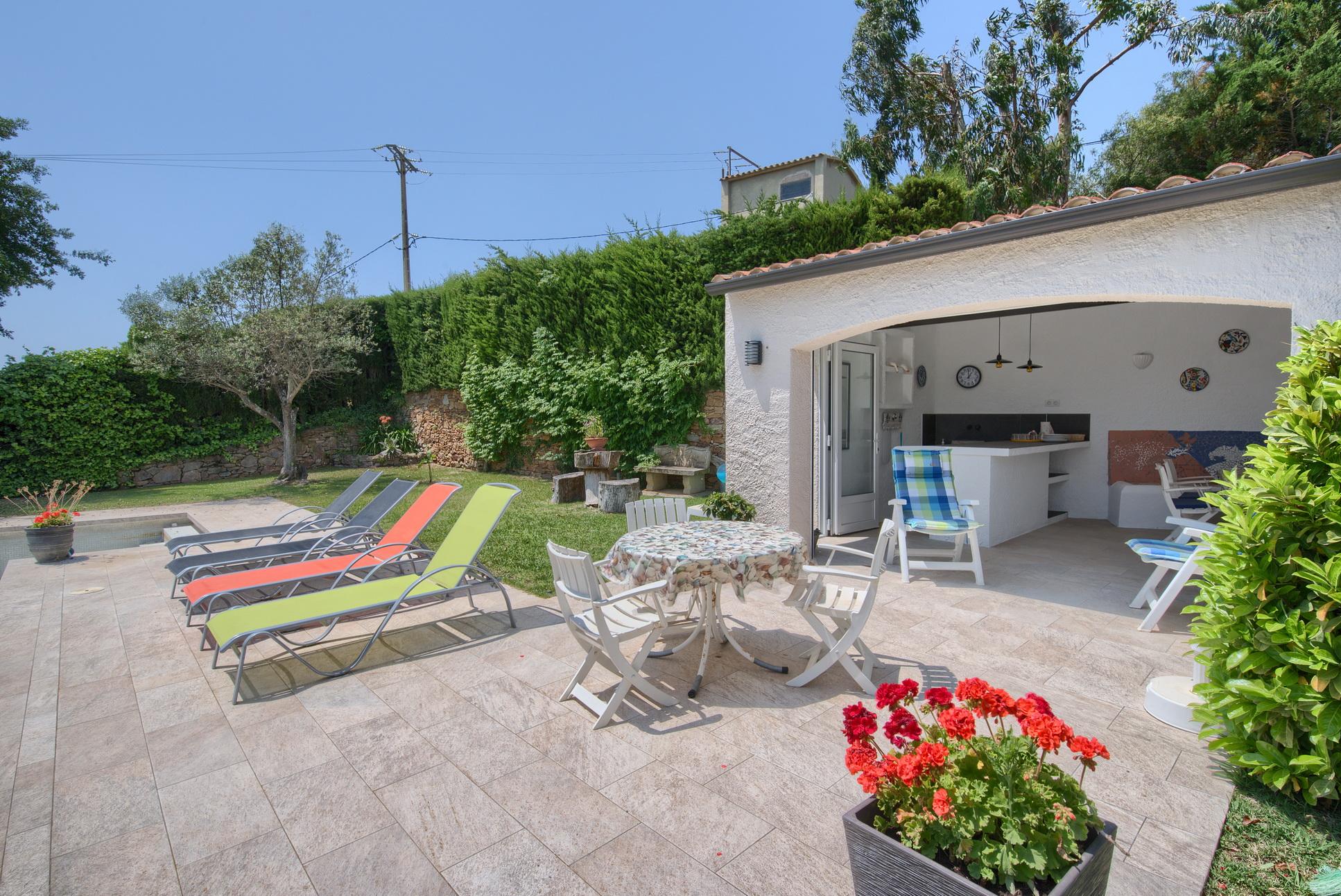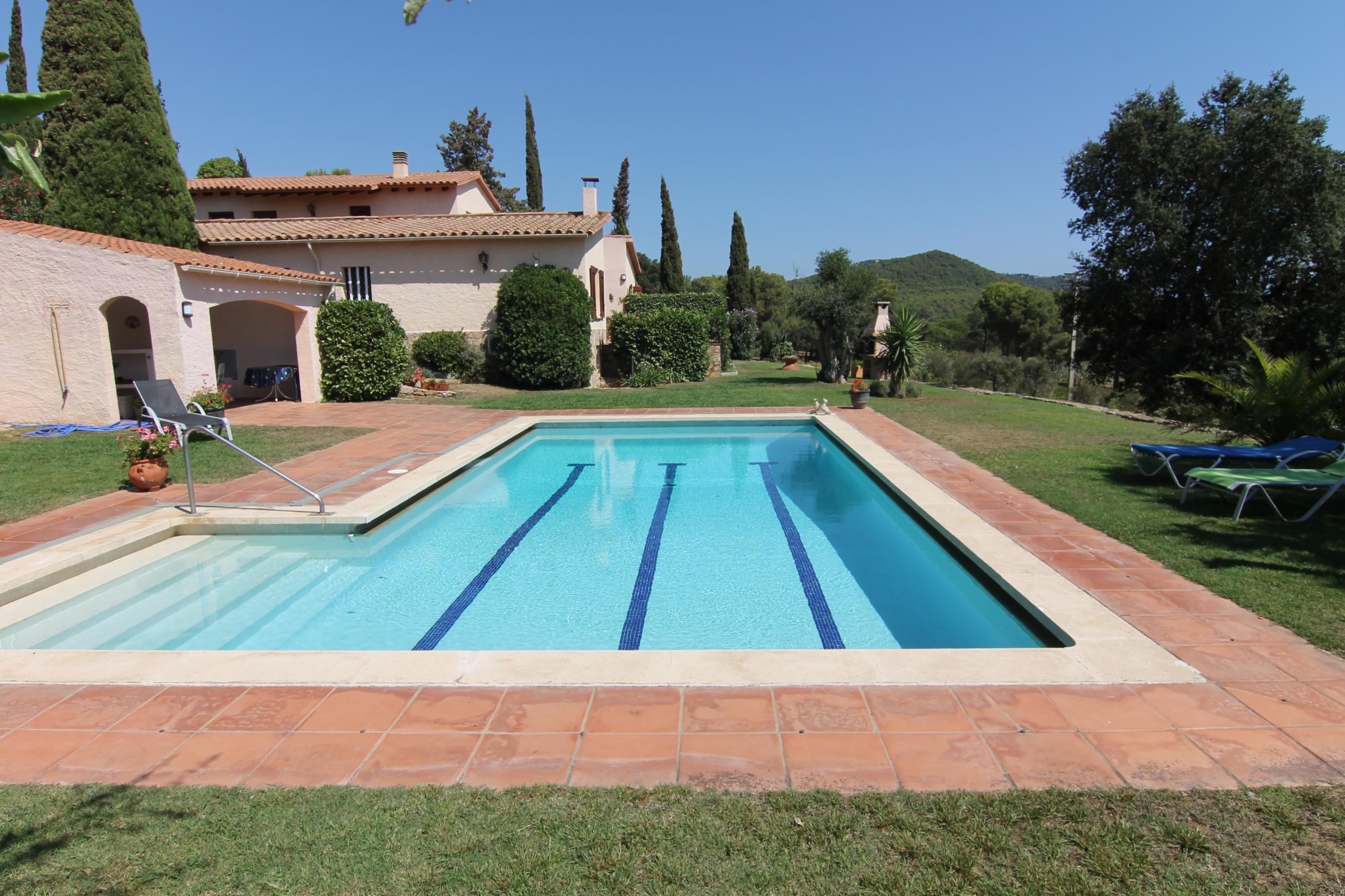 La maison est située dans un quartier très calme au bout d'un quartier résidentiel. Il a de belles vues sur les champs, les forêts et la mer Méditerranée. Le jardin est très spacieux avec une grande surface de pelouse. Dans la zone de la piscine se trouve la salle à manger d'été avec un petit réfrigérateur et un évier, un espace très agréable pour s'asseoir et manger à l'ombre. Sur la propriété il y a de la place pour garer 4 voitures.