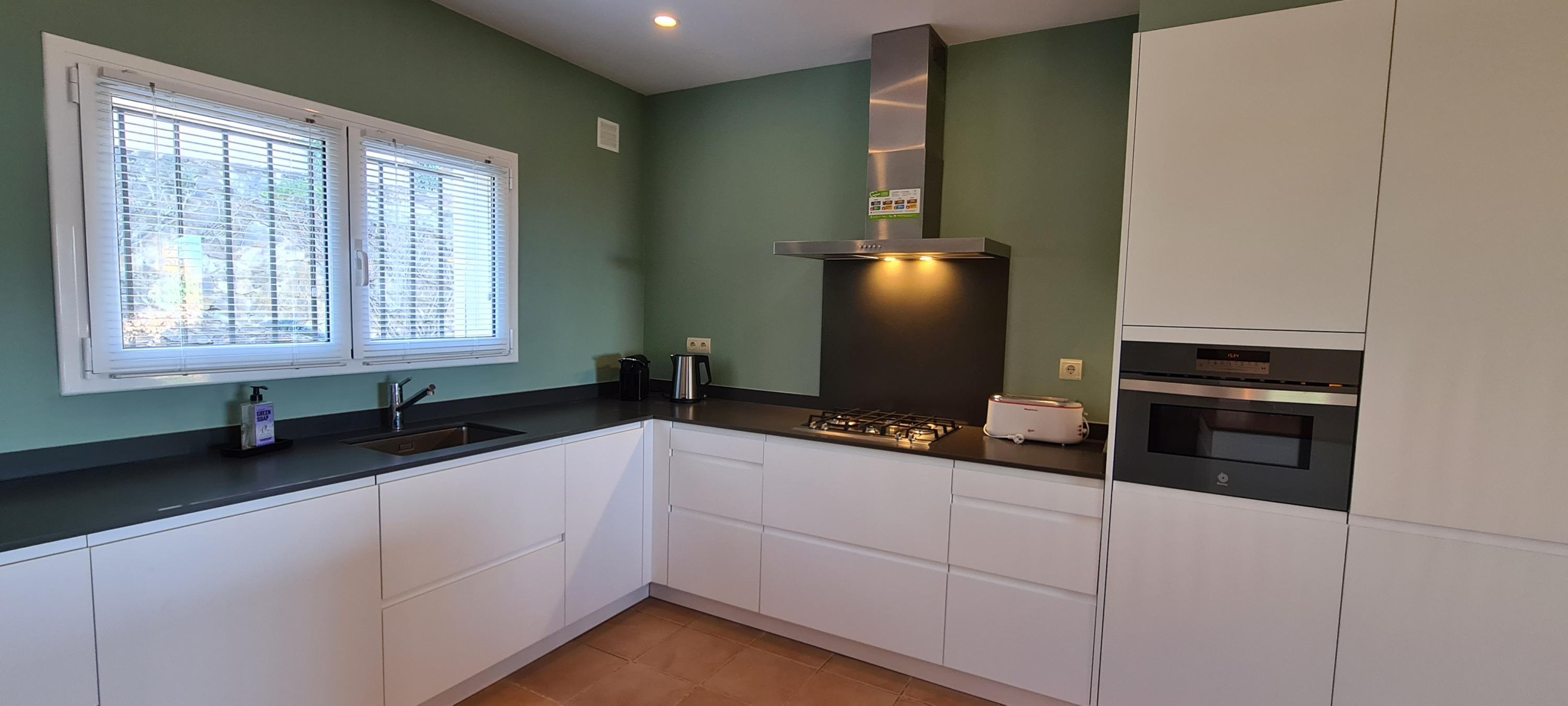 La cuisine très spacieuse est entièrement équipée avec réfrigérateur / congélateur, lave-vaisselle, four, cuisinière à gaz, cafetière, etc. Un lave-linge est également à votre disposition.