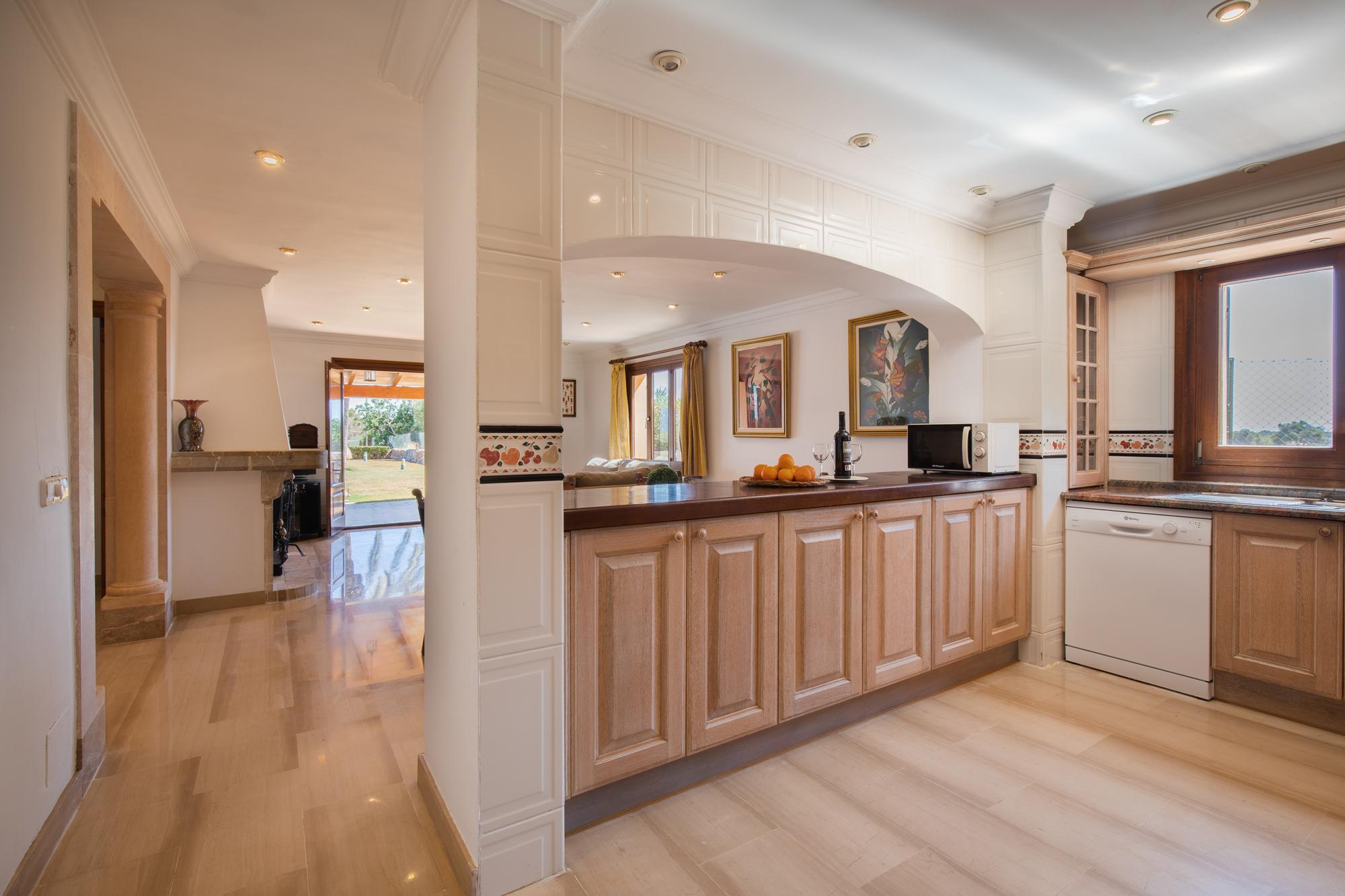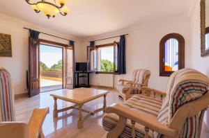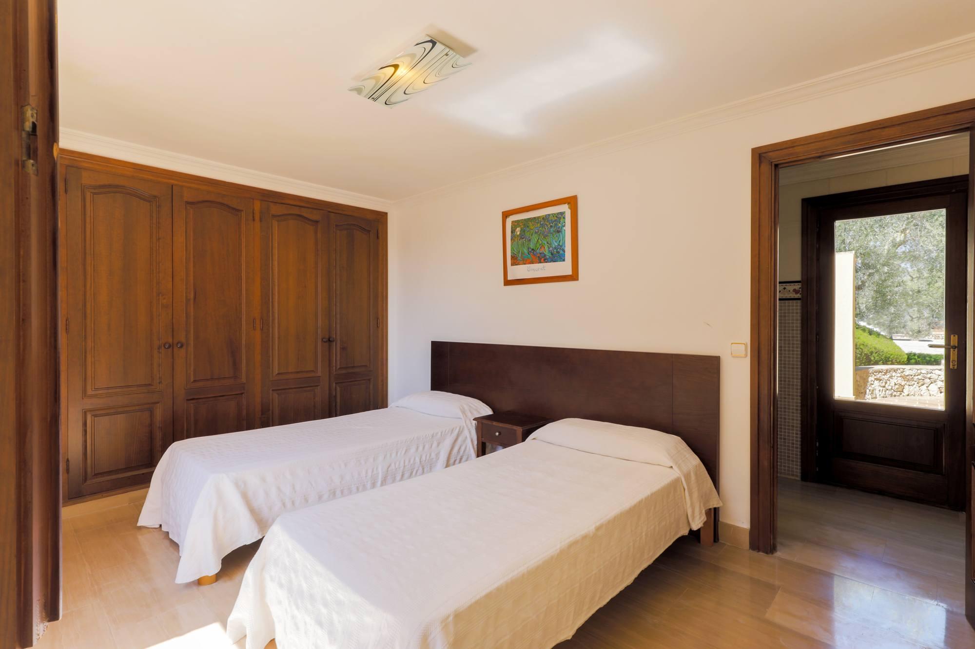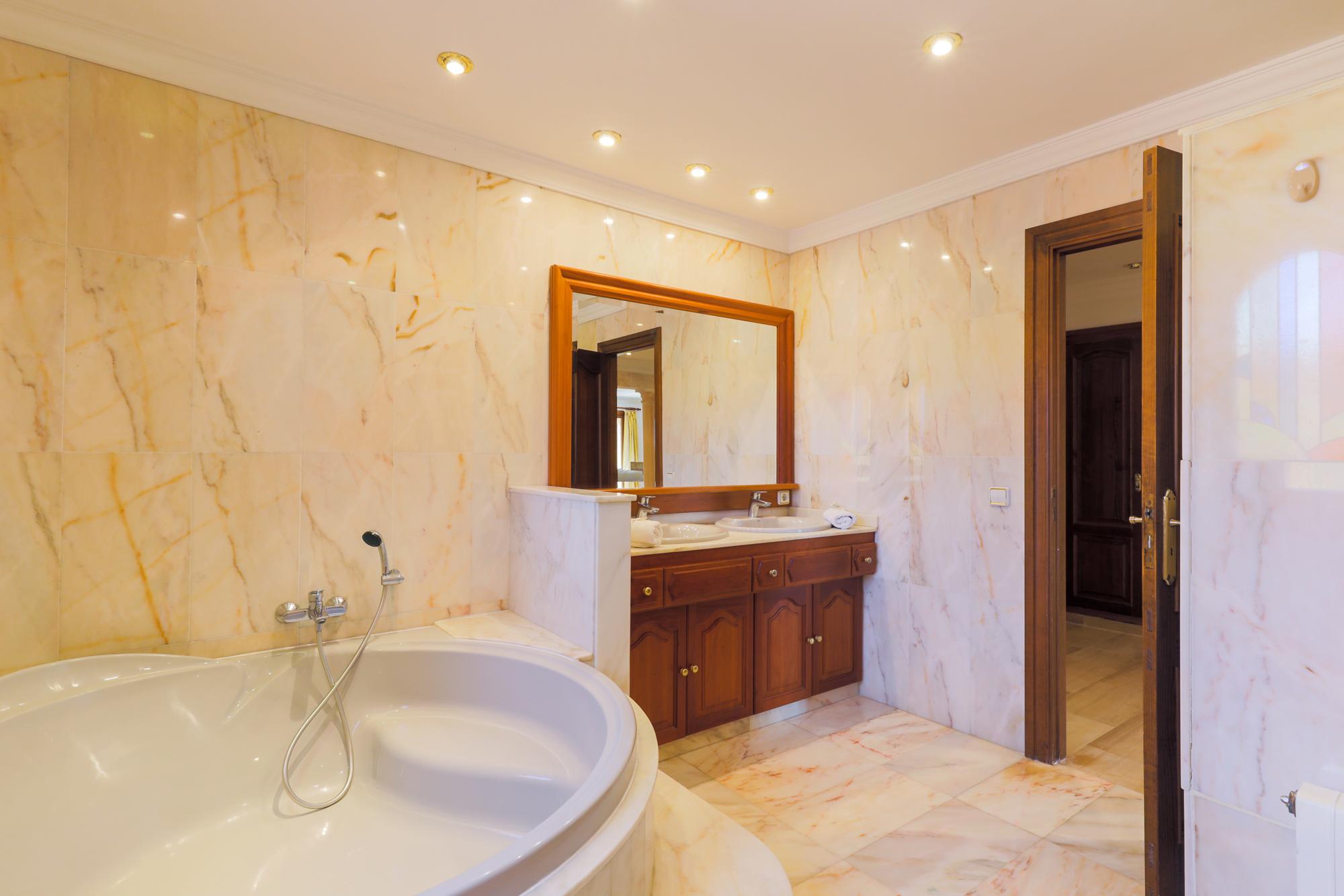Villa Cala Mitjana est une villa spacieuse pleine de lumière naturelle avec des carreaux de marbre de refroidissement partout, meublé avec un style classique. La salle spacieuse donne accès au salon / salle à manger ouvert avec portes donnant sur le jardin et à la terrasse meublée de la piscine. Belle cuisine ouverte séparée de la salle à manger par un bar de petit déjeuner. Cet étage offre également deux chambres à coucher; Une chambre et une salle de bains familiale séparée avec un bain circulaire surélevé et une grande douche séparée. La seconde est une chambre à deux lits avec salle de douche attenante qui a accès à l'extérieur-cette salle de douche contient la machine à laver-. Sèche-linge disponible dans le garage.