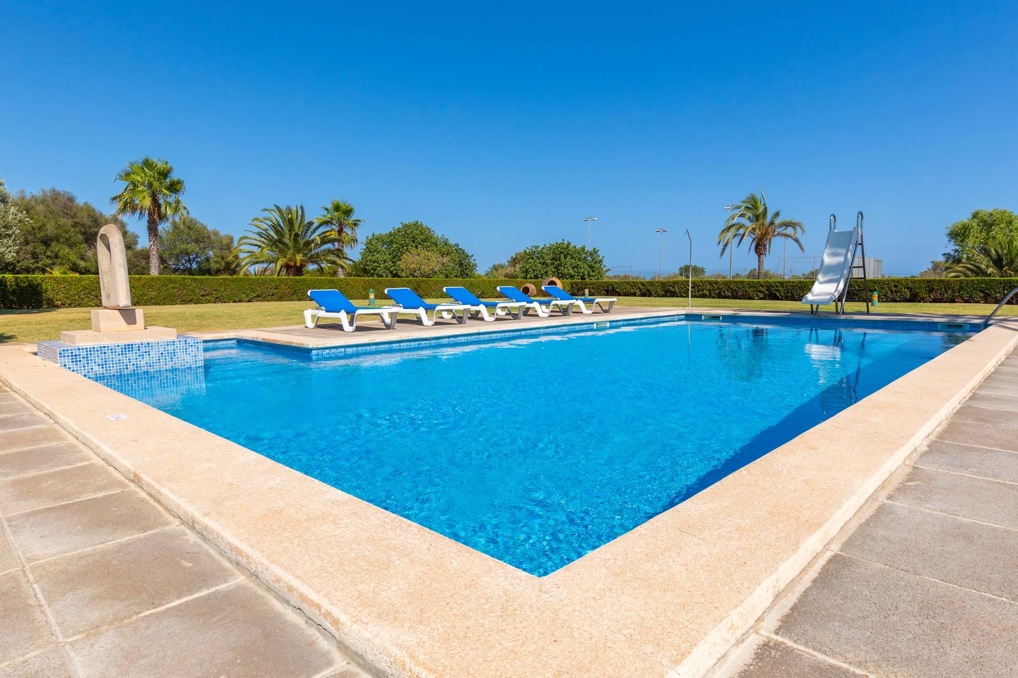 Villa Cala Mitjana, avec tennis privé, spacieuse villa pour 10 personnes, située dans le pays, mais à distance de marche Cala Cala Ferrera crique. Vaste zone de pelouse bien entretenue, piscine privée avec toboggan piscine-grand plaisir non seulement pour les enfants.