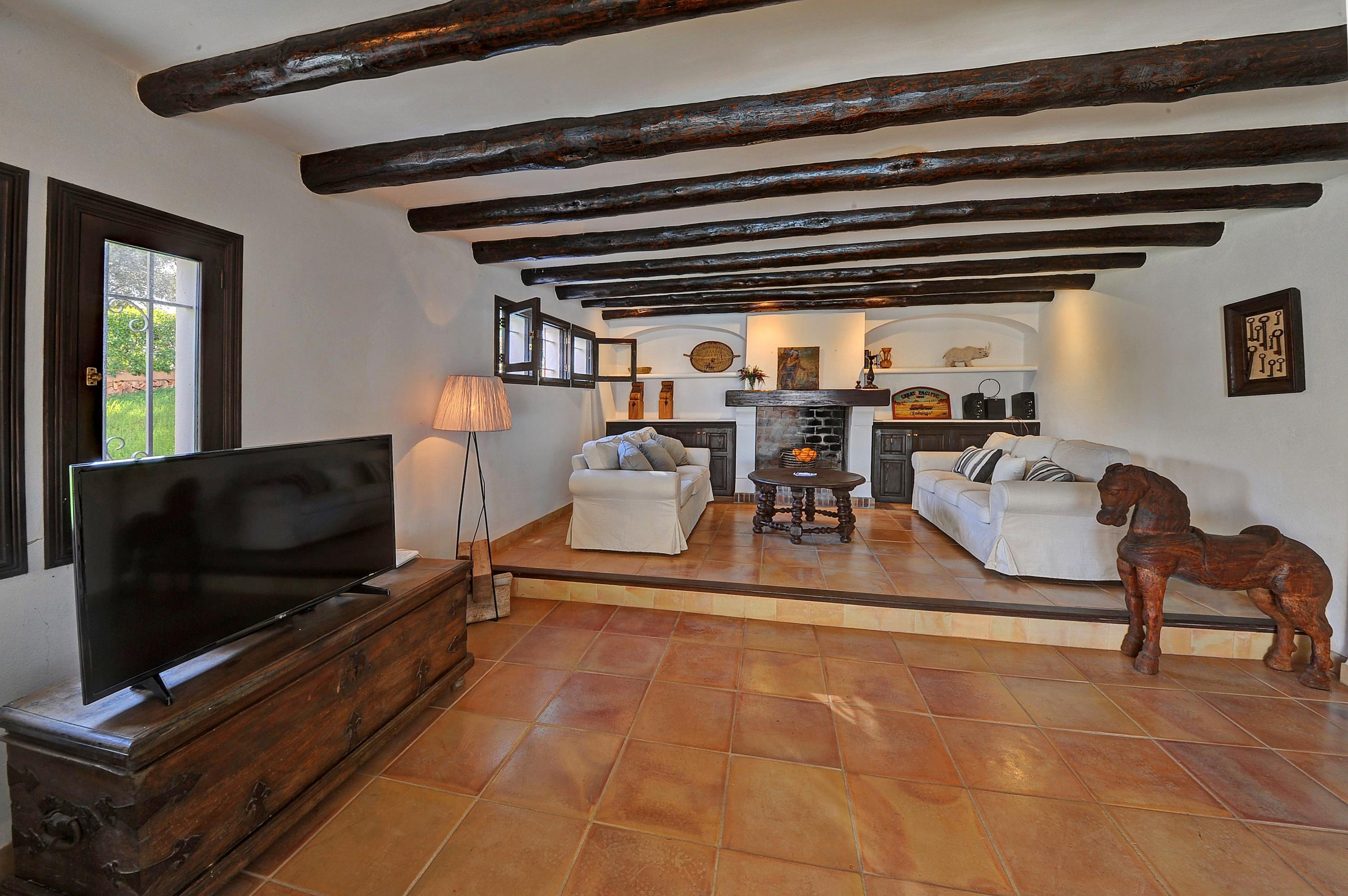 Un bel escalier en marbre mène à la salle d'étude du premier étage. C'est un quartier tranquille et décontracté avec. Les vues de cette chambre vers Santanyi sont encore plus étonnantes. L'étage supérieur offre trois chambres supplémentaires. Une chambre double avec salle de douche attenante et accès à la terrasse supérieure avec vue imprenable. La chambre à coucher suivante, également avec des lits jumeaux, a salle de douche en suite, et l'accès au balcon meublé qui est idéal pour les bains de soleil privés. La dernière chambre a un lit double et salle de douche complète en-suite. Les vues de loin de cet étage s'étendent à travers la campagne ouverte vers les îles lointaines de Cabrera sont vraiment belles.Piscine fermée disponible. S'il vous plaît vérifiez avec nous au moment de la réservation. Ceci est fourni gratuitement.