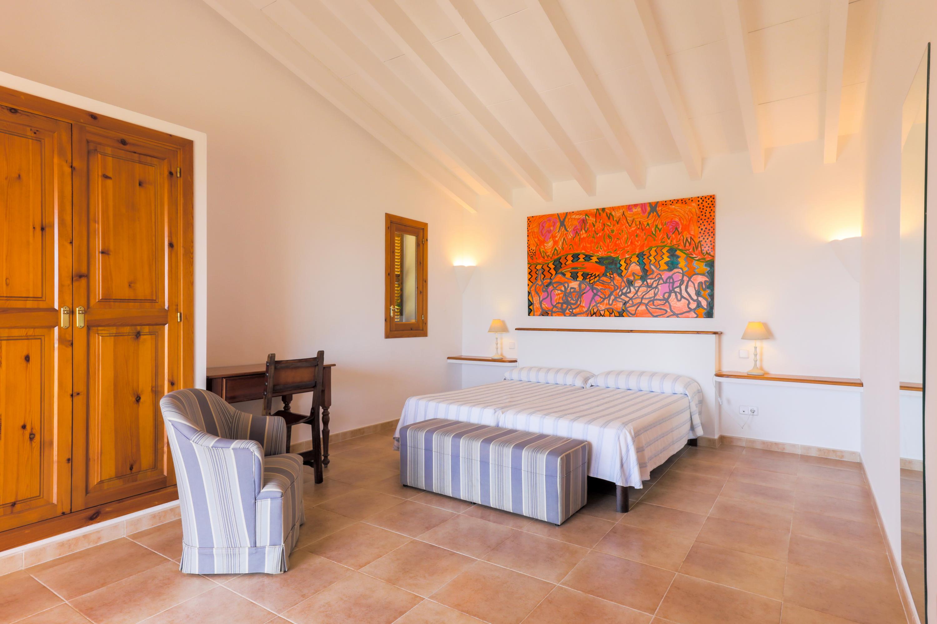 Le premier étage dispose de deux chambres spacieuses jumelles avec chacune une jolie salle de douche attenante et porte française ouvrant sur leur terrasse privée où vous pourrez vous détendre et profiter de belles vues de grande portée sur les amandiers, la ville de Santanyi à l'extrémité et Distinguer l'île de Cabrera au loin.