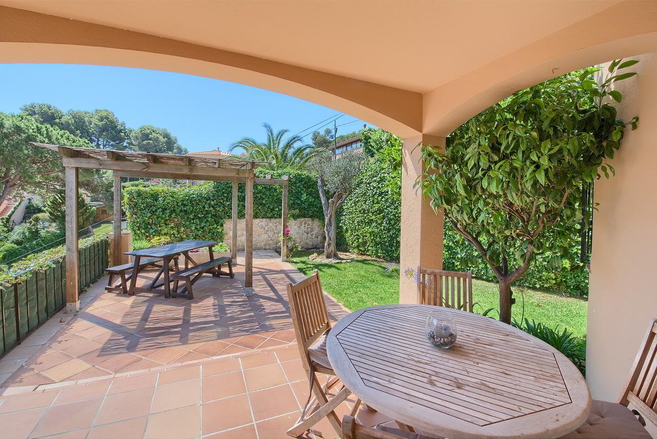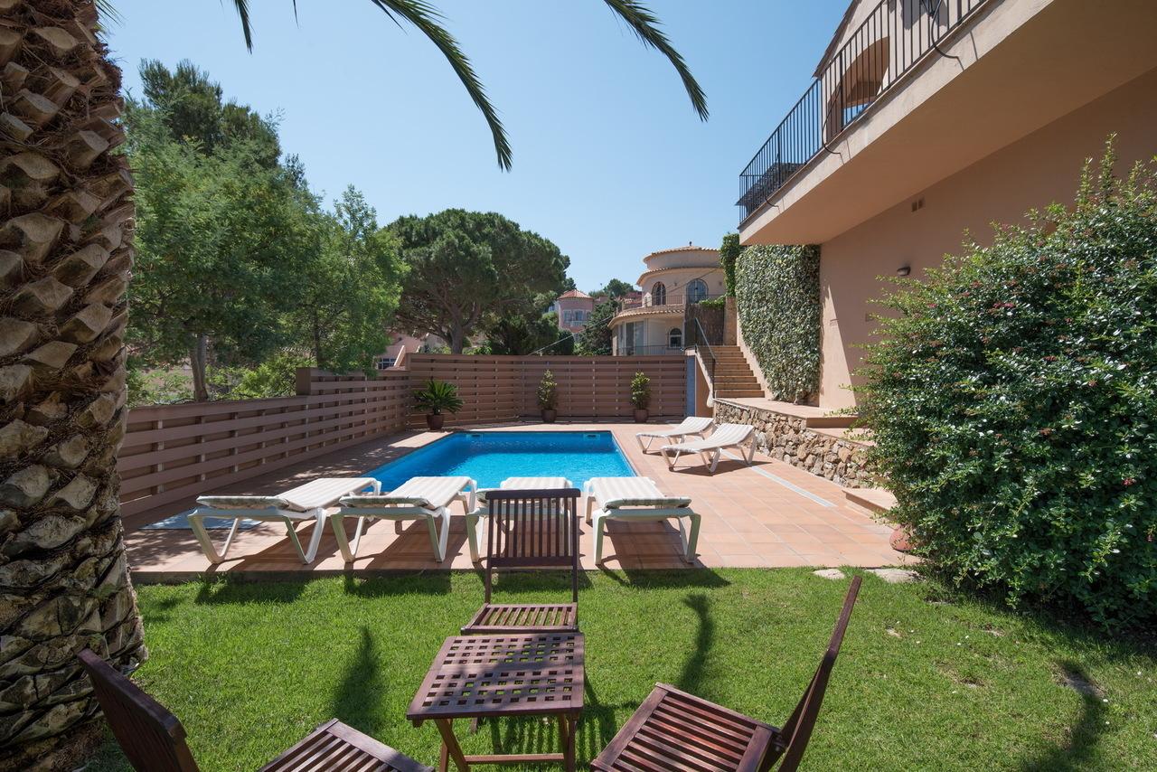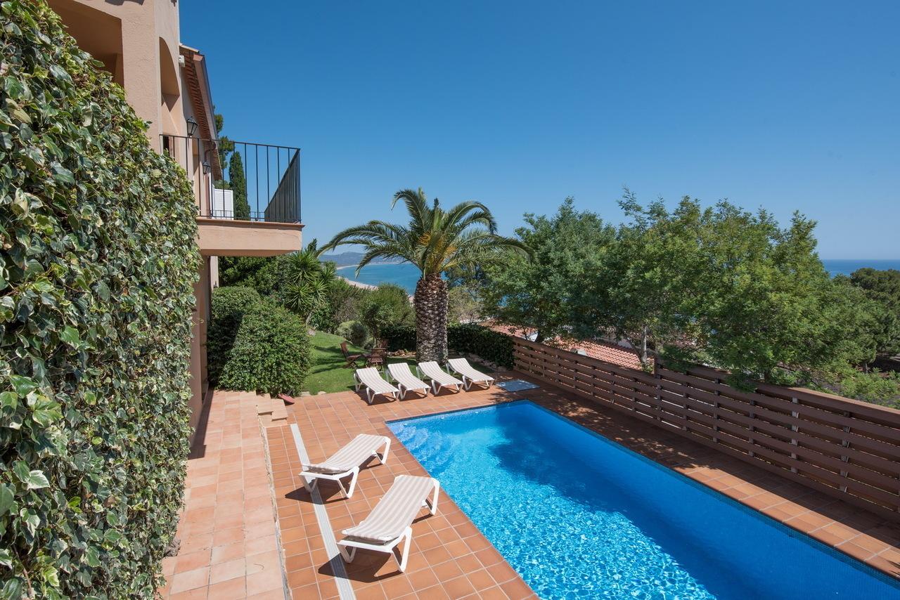 Bij het huis is een ruime tuin met veel gras en een beschut gelegen privé zwembad. Het huis heeft twee niveaus, het niveau van het zwembad met tuin, terras, wasruimte en toilet. Een verdieping hoger beschikt u over een tweede tuin, met een overdekt terras. Ook als het warm is, kunt u hier dus in de schaduw genieten van het uitzicht op zee en de Medes eilanden.