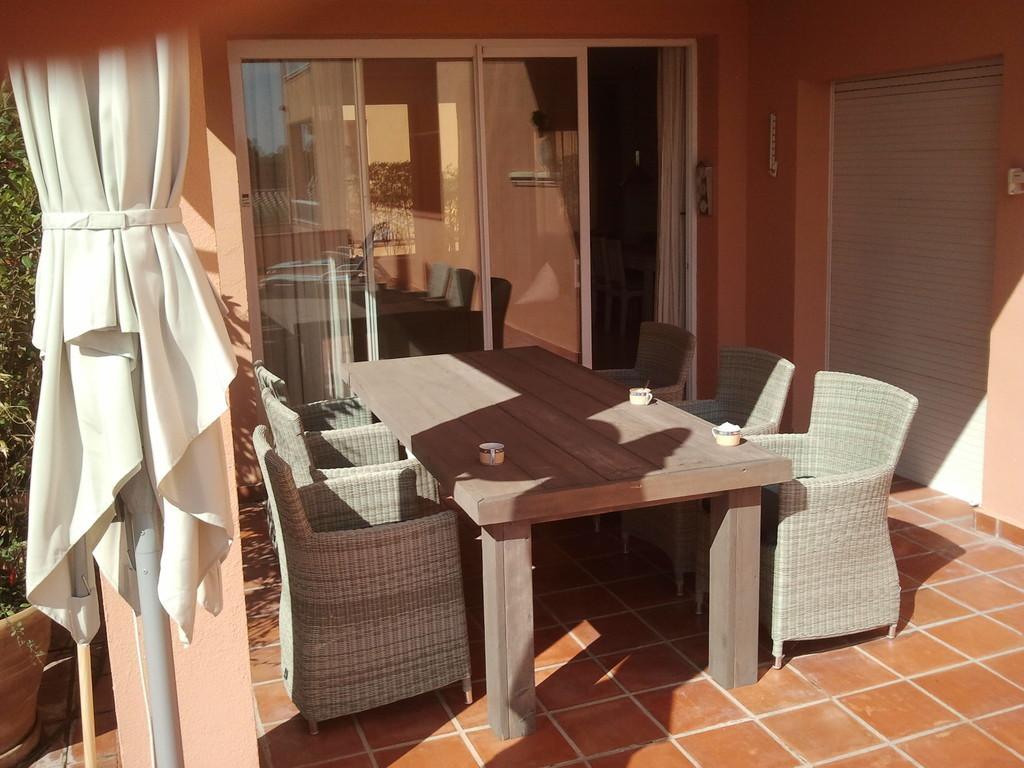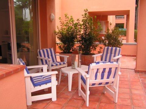 Private terraces with garden furniture, shared swimming pool, children's pool, garden, garage.