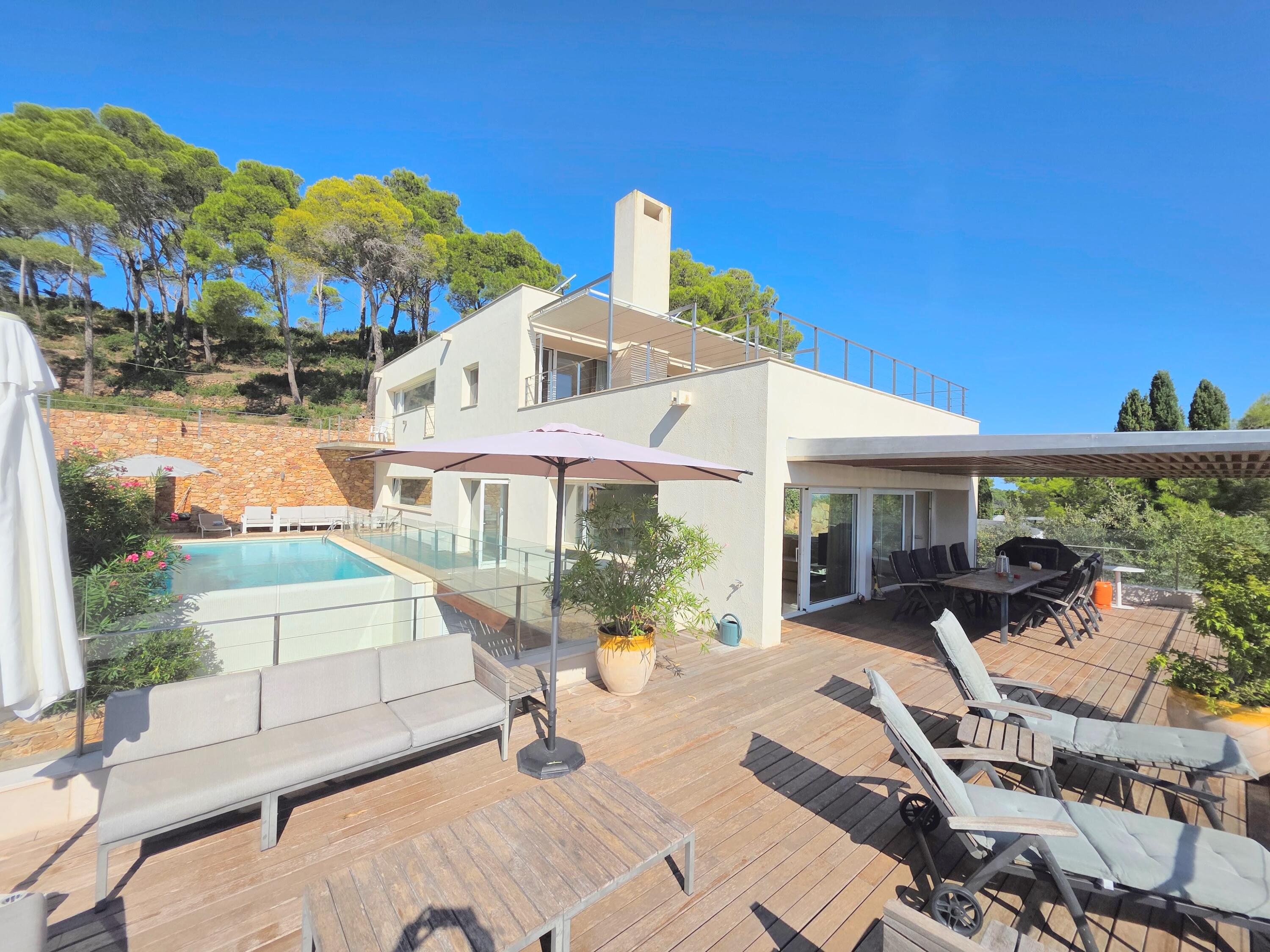 Casa Monica in Begur consists of three independent sections that together can accommodate 14 people, making it ideal for two or three families to stay while maintaining their privacy. Between the houses is a beautiful private swimming pool with a large terrace. The houses are quietly located on a small road. The large 15-metre-wide main terrace has a beautiful view of the Mediterranean Sea and is equipped with a large dining table, lounge set and barbecue, so that you can all enjoy this beautiful place!