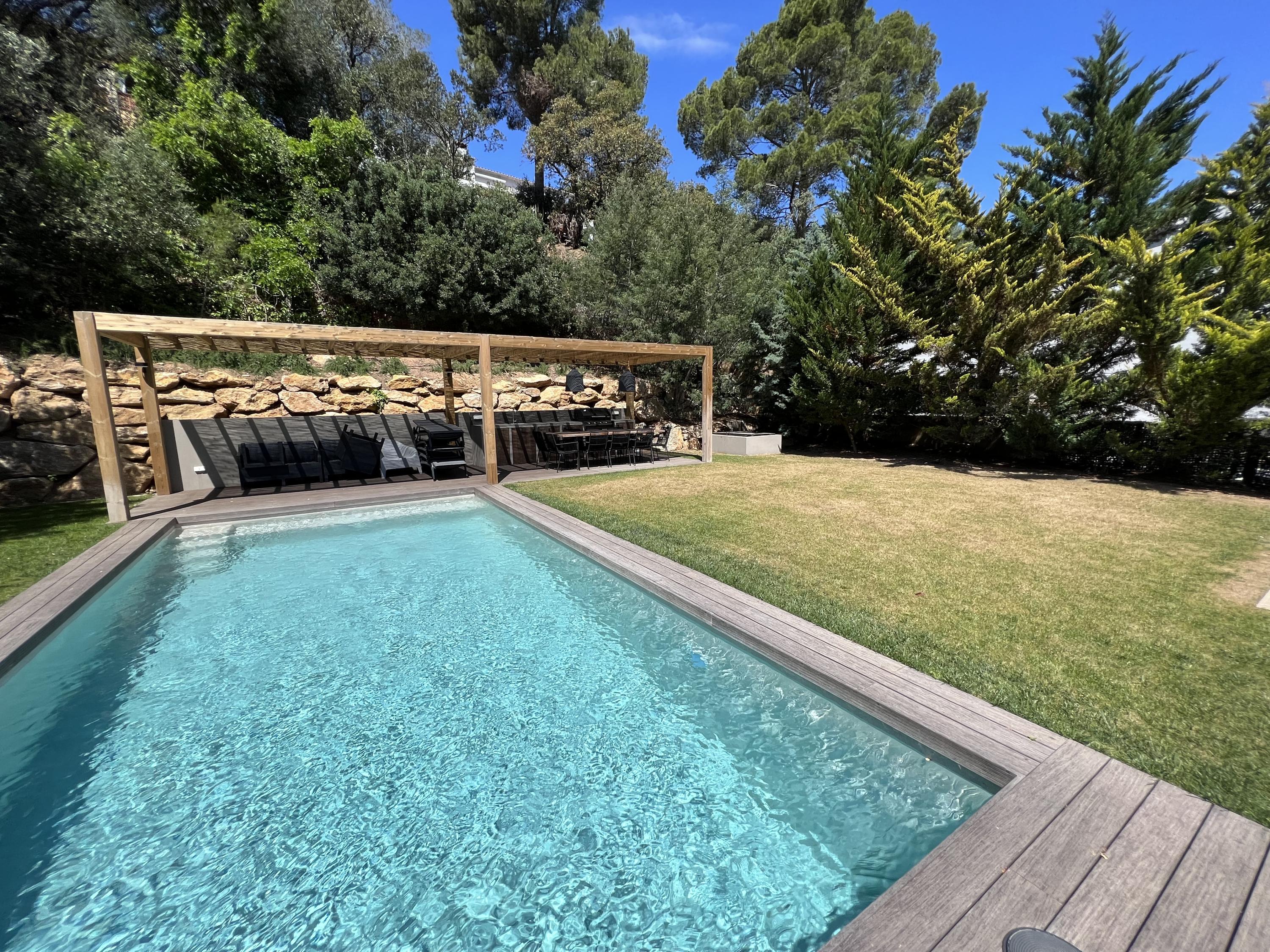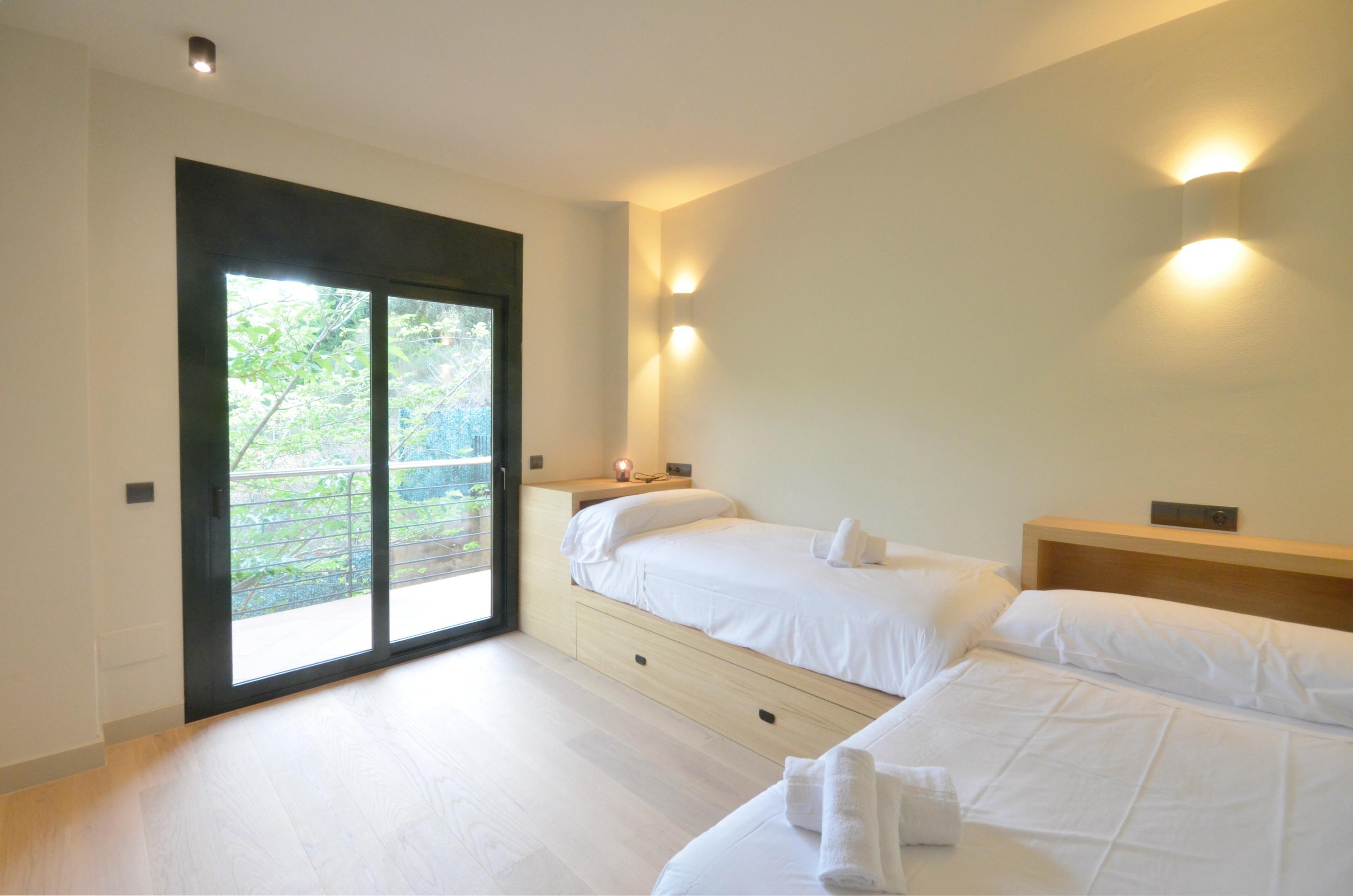 Casa Añó is very close to the centre of Begur and just 4 km from the best beaches of the Costa Brava.   With privileged views of the Castle of Begur, the Montgrí, the sea and even the Pyrenees, we find this property divided into the main building and an annex flat. In the main building we find the first floor with the hall and the living room. Downstairs we find the fully equipped kitchen open to the dining room, three double bedrooms, one of them en suite and a second bathroom with shower. In the annex there is a small living-dining room with fridge and microwave, two double bedrooms and a bathroom with shower.   Outside, there is a large garden and a 9x3m swimming pool fully equipped with outdoor furniture.