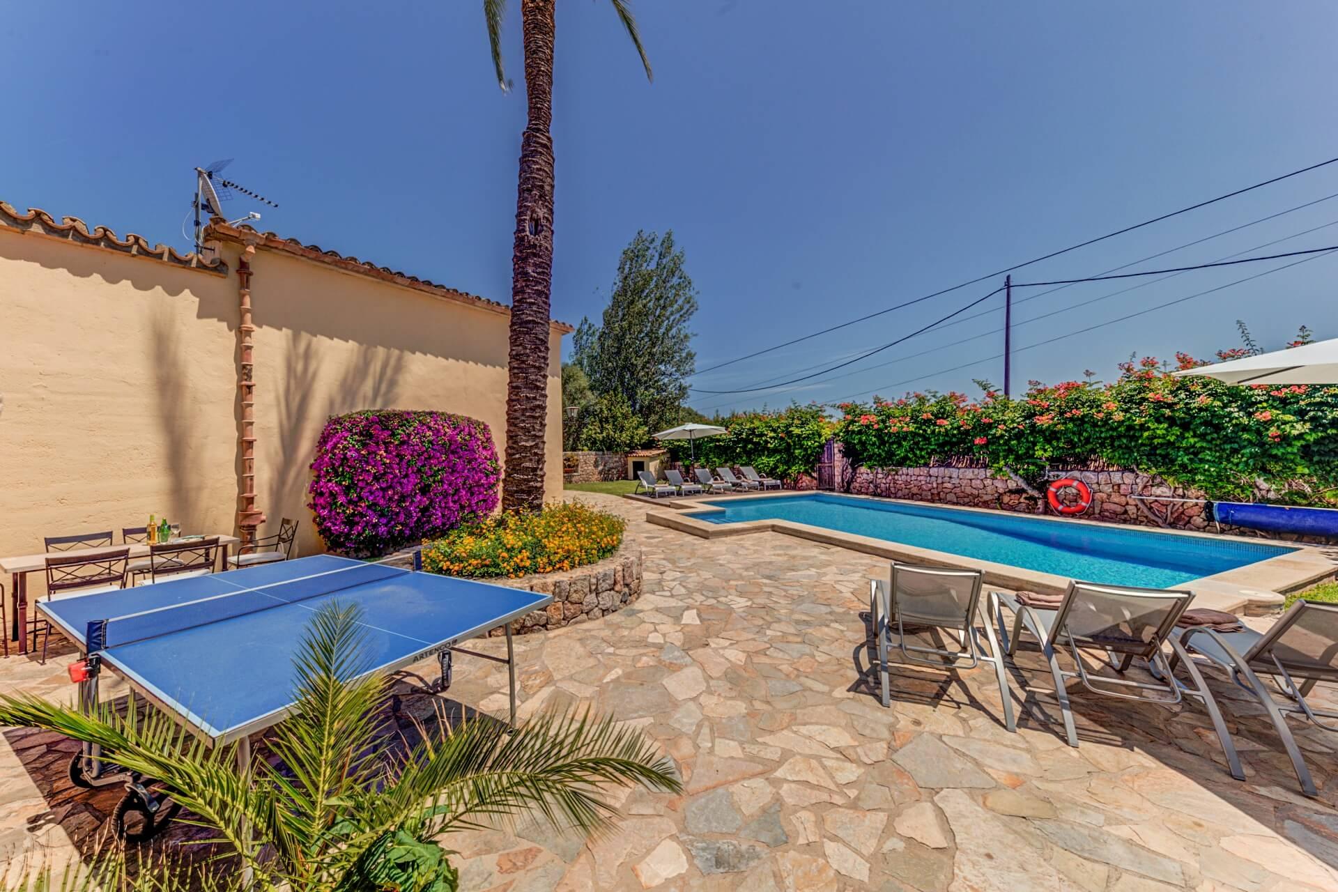 Private pool, covered patio with table, chairs and BBQ, plus fridge and sink. Terrace, garden, deck chairs, lounge set, table tennis table.