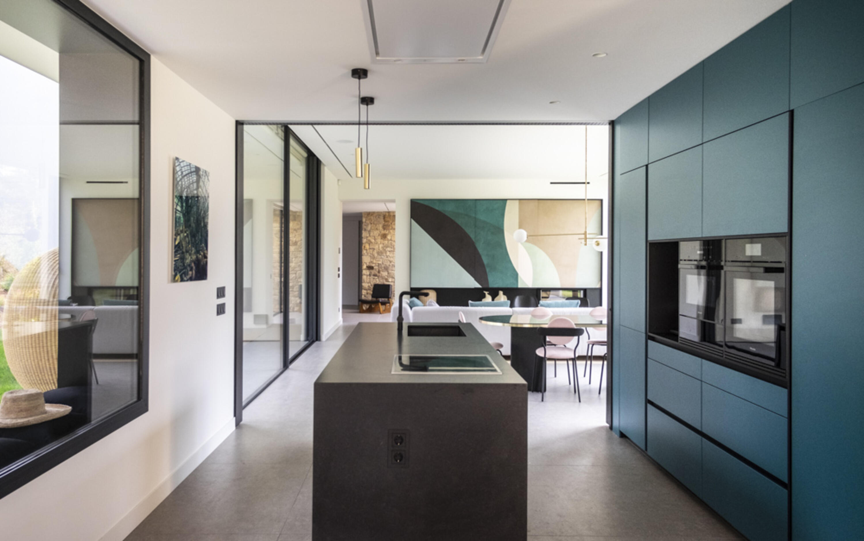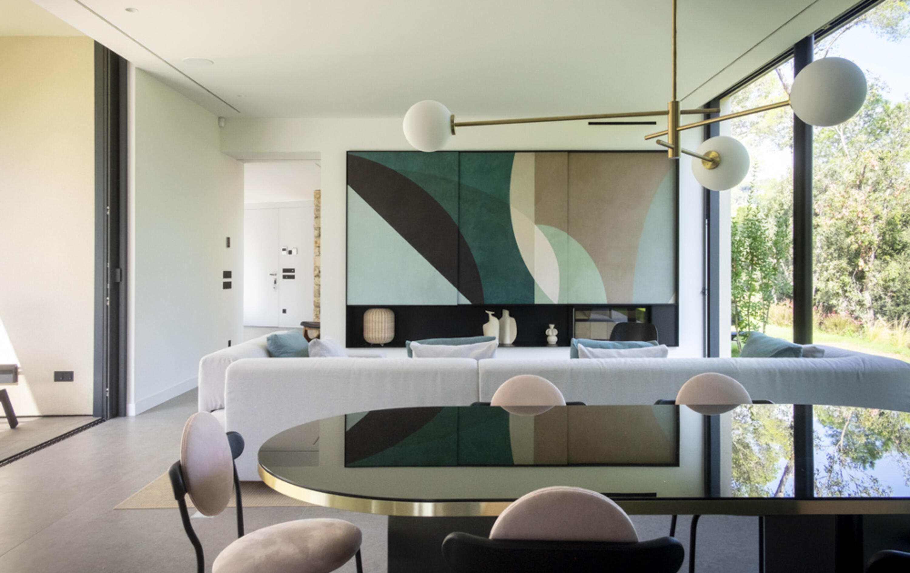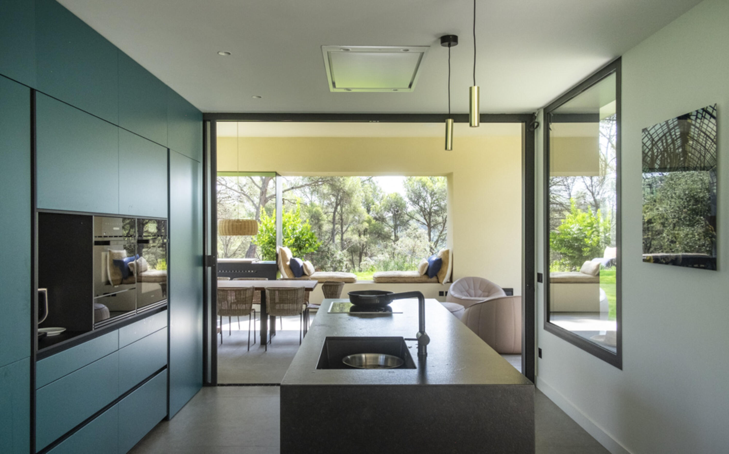 Villa Bosca occupies an elevated position, designed to take full advantage of the beautiful panoramic views of the green hills. Spread over 2 levels, it has a modern avant-garde interior. The spacious living-dining room enjoys plenty of light and is fully connected to the outside, the garden and the pool, thanks to the large windows that open completely. This makes the living space connected to the outside. It has a stylish open kitchen, cleverly designed so that it can be converted into a separate kitchen thanks to a large sliding door.