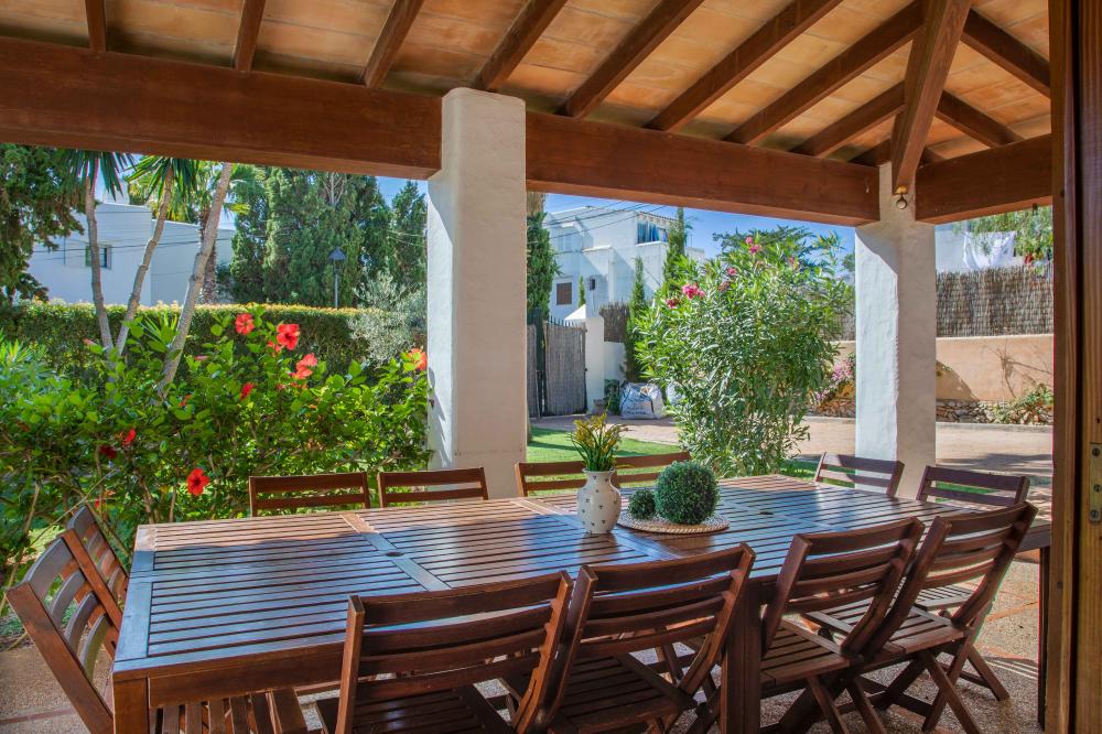 Outside there is a covered built-in BBQ with a long table and chairs that can easily accommodate 8 guests for a delicious meal together. A refrigerator and sink are also provided. To the side of the barbecue are a toilet and utility room. The pool is perfect for sunbathing and relaxing. It has a teak floor on one side, a lawn on two sides and a stone patio on the other.