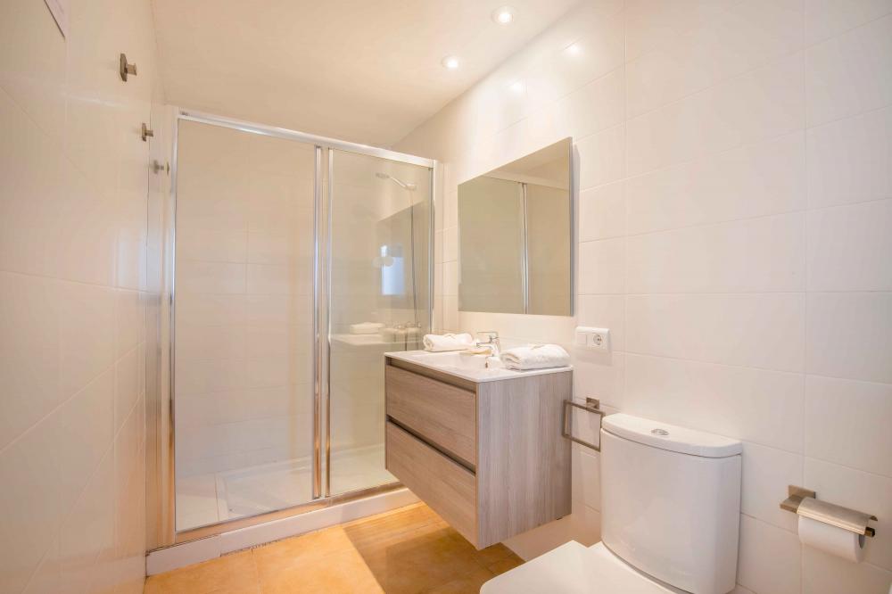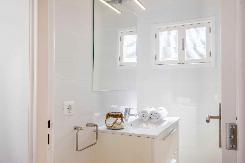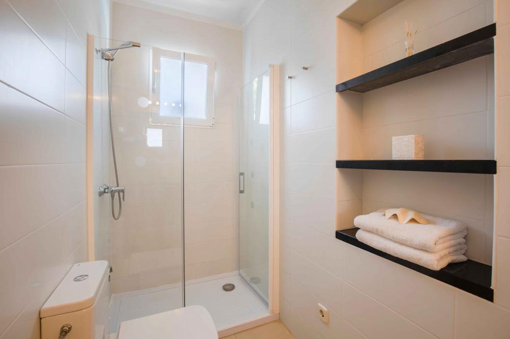 With just crossing the main door you will find a sophisticated apartment divided into four floors. However, the most impressive thing is the 180 degrees view in front of you where you can see from Cap de Creus, to Illes Medes and up to Cap de Begur. Just entering the house, you will find the kitchen to your left with an open working station to enjoy the views will cooking. Moving a long a huge table to seat up to 9 people without any problem and a big living room. But the most impressive part of this floor is the private terrace with a table for up to 6 people, and a chill-out area to enjoy the views. The upper floor has two bedrooms with four individual beds, and a private bathroom with a shower and toilet. The lower floors are divided into two. In the first one, you can find the laundry and a ensuite room. Last floor, you have another ensuite room with another private terrace and another chill-out area to enjoy the views.All the house has grey floors with white walls. It is easy to clean, but also has a fresh and summery atmosphere.