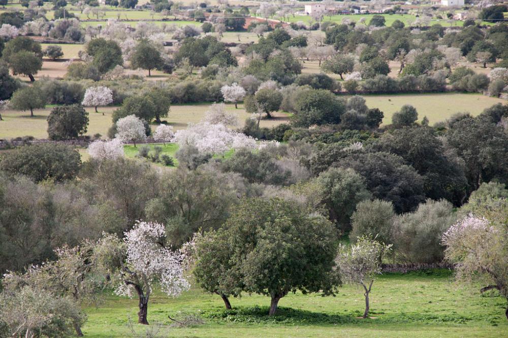 A beautiful panoramic view over the center of Mallorca with the mountains in the distance.