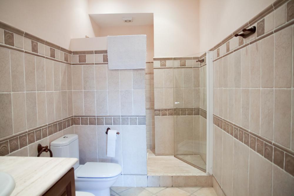 One floor below are the four double bedrooms. One of these has an en-suite bathroom with shower. One of the four bedrooms has two single beds, the other rooms have a double bed. The second bathroom has a double sink and a bath with shower.