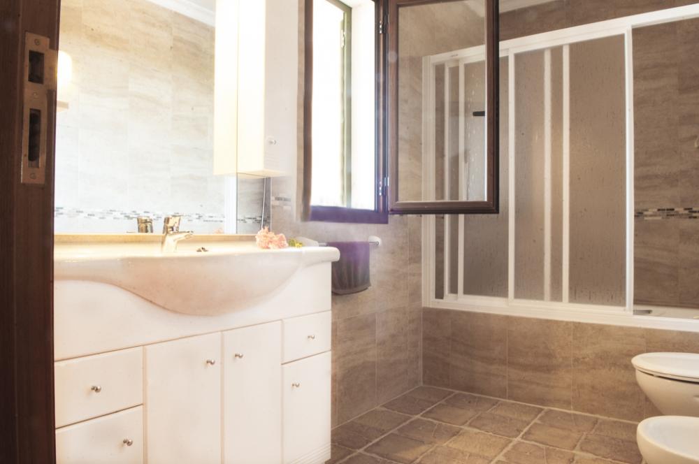 The house is suitable for 8 people and has four double bedrooms and two bathrooms. The total surface of the house is about 225 m2. On the top floor, where you enter the house, is the spacious living-dining room, followed by the large terrace with the private swimming pool and a view of the green hills in the area.