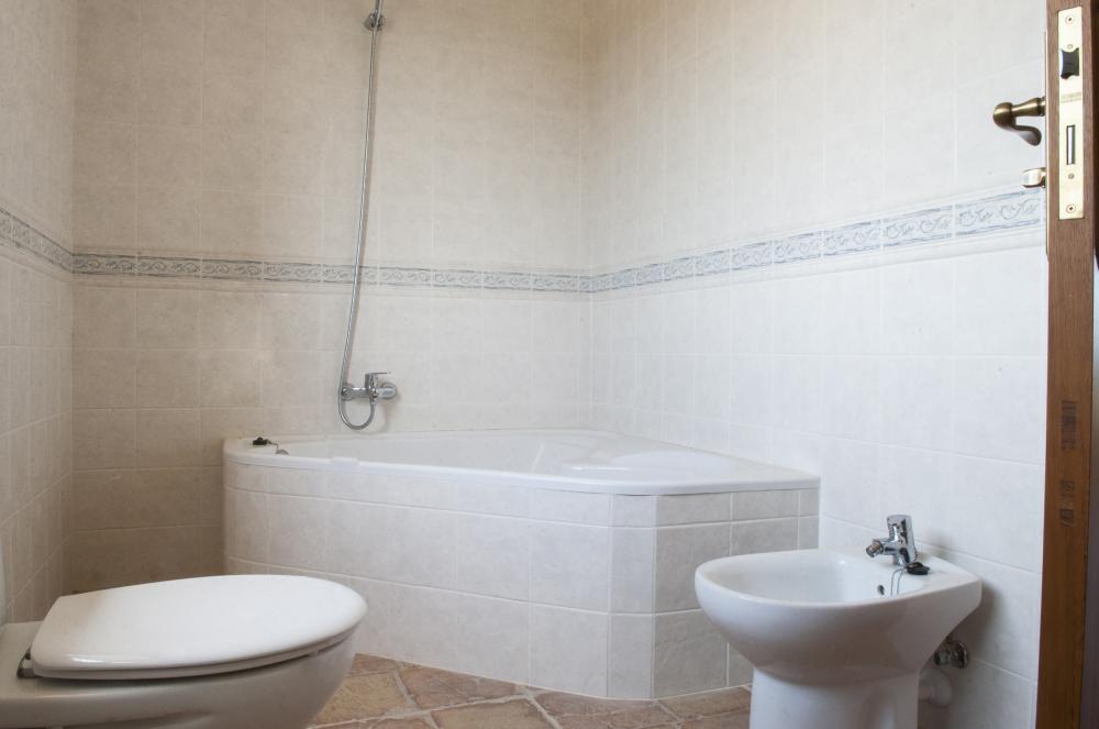 The ground floor of the property comprises a tastefully decorated lounge/dining room with delightful local stone walls. Also on this level there is a fully fitted kitchen with a door to the outside. One step down from the dining room and there is a full bathroom with hydro massage shower over the bath. A staircase leads to the first floor and a bedroom with two single beds. From here a hallway leads to another twin bedroom, a double bedroom and a full split level bathroom.