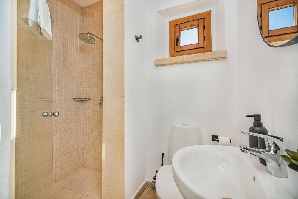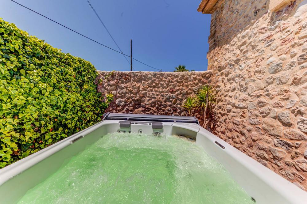 A private pool with Roman steps complements the setting. Located at the end of a quiet cul-de-sac in a residential area, and close to Pedra Vista, just on the outskirts of Puerto Pollensa. It is within walking distance of the beach and the wide range of amenities in the resort.